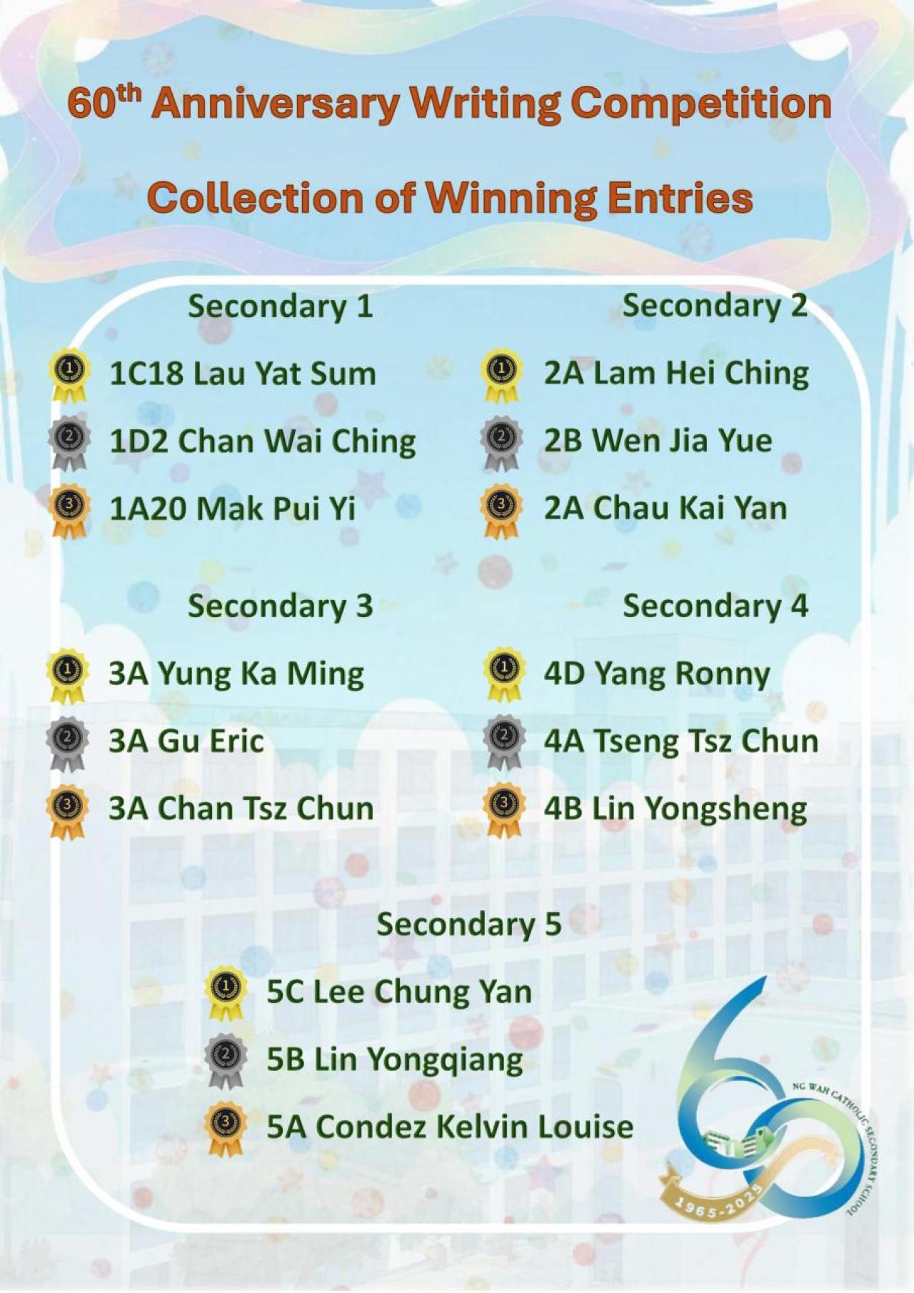 學年轉眼間便快要結束了,主人為獲得佳績,每天放學後,主人都會在課室奮努力溫習。一天如此,一個月也是如此,日以繼夜。每當主人身心疲倦時,他總是低下頭望着我,望着我身上的伍華校徽,為了自己有朝一日可以登上舞台領獎,望着禮堂舞台對面懸掛著的校徽。