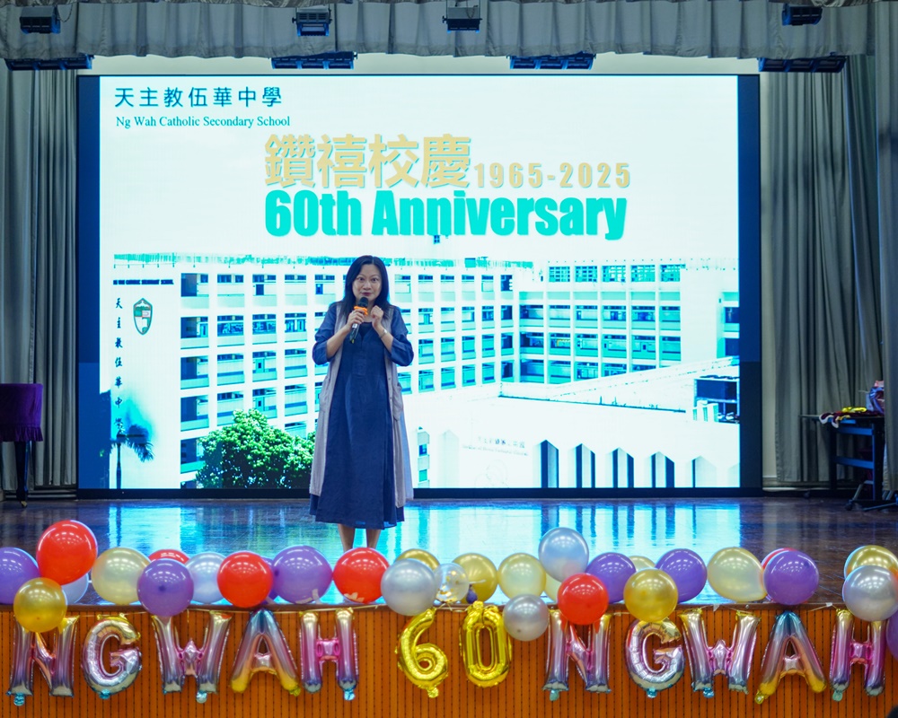 本年乃天主教伍華中學創校60周年,為慶祝此重要日子,全體師生於2024年9 月24日齊聚禮堂,為一系列校慶活動舉行簡單而隆重之啟動儀式。師生們藉伍華歷史短片回顧我校發展歷史,司儀亦介紹將會舉辦之慶祝活動。隨著李宛儀校長率眾家長、老師、學生會以至級社代表的剪綵儀式,校慶活動正式開始。