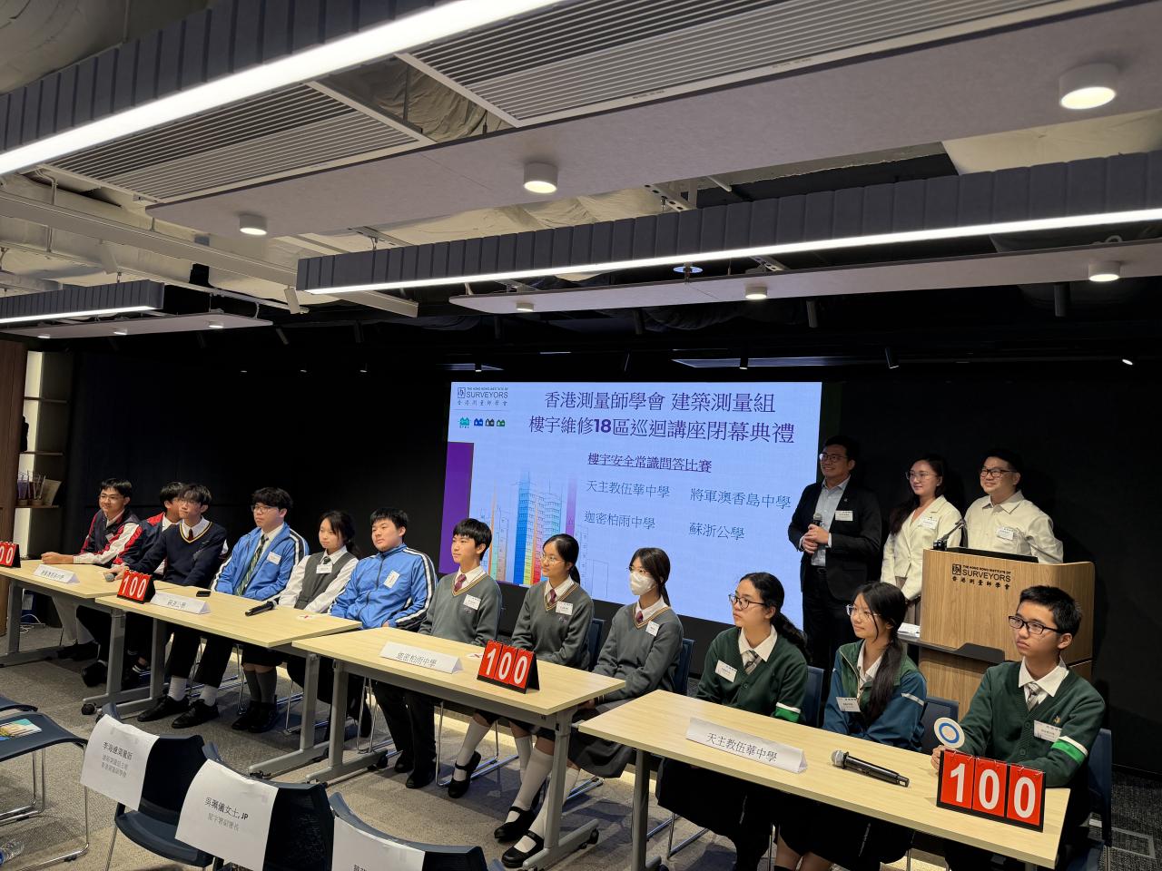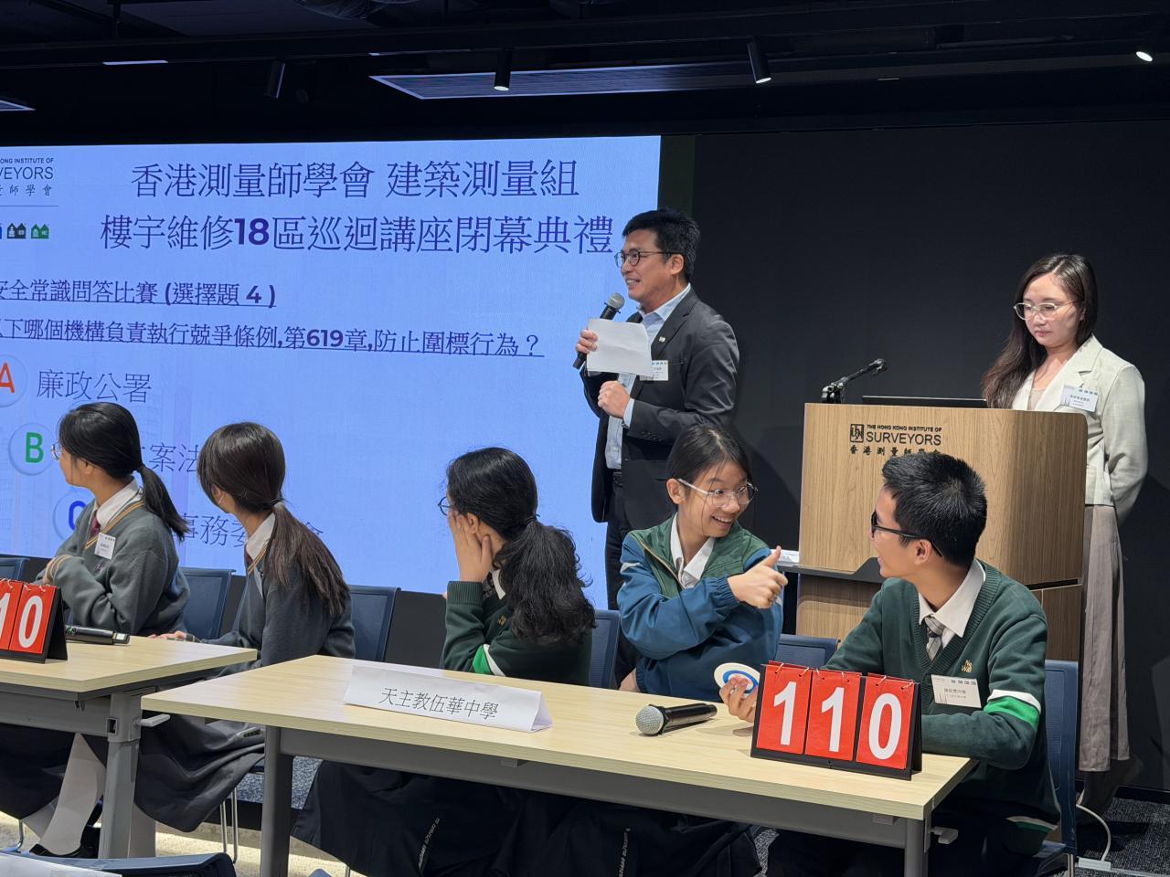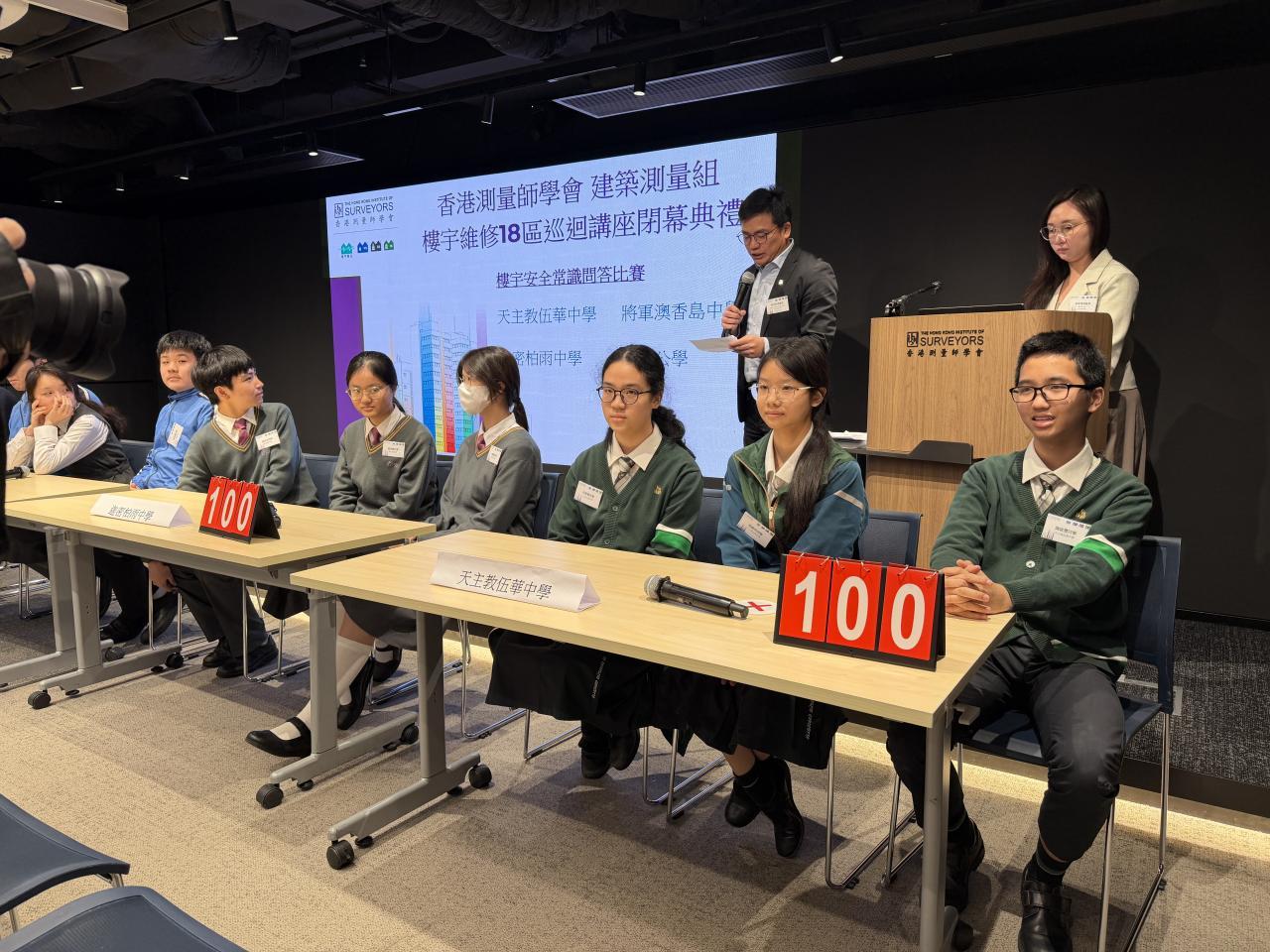 2025-11-22 本校學生日前參與由香港測量師學會舉辦的《18區樓宇安全常識問答比賽》,透過活動認識測量師工作、加深對樓宇安全的認識,讓他們明白維護社區安全的重要性。三位同學最終榮獲亞軍,獲獎的學生包括:3B 陳啓豐3B 朱睿珊3B 温嘉玥 活動剪影