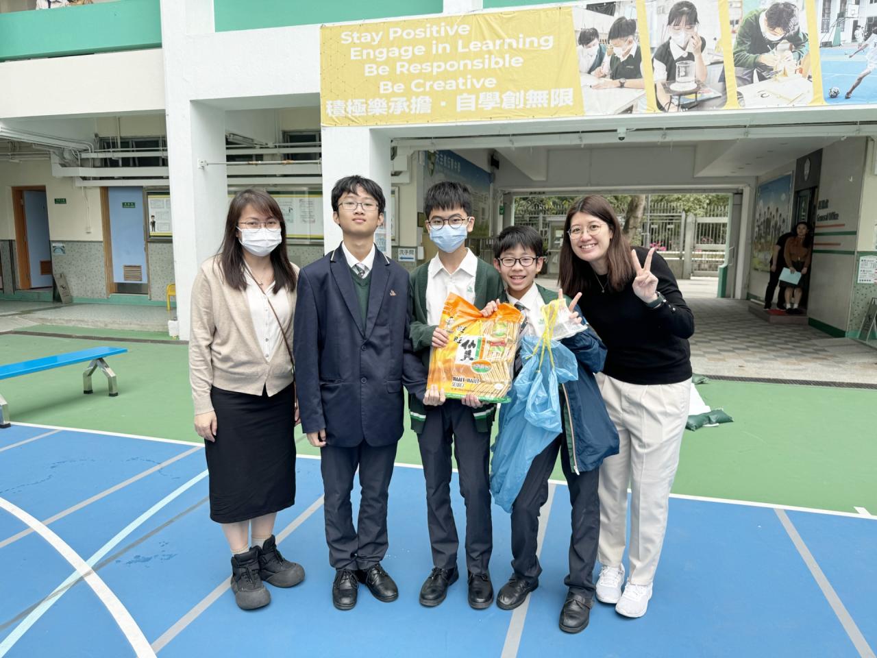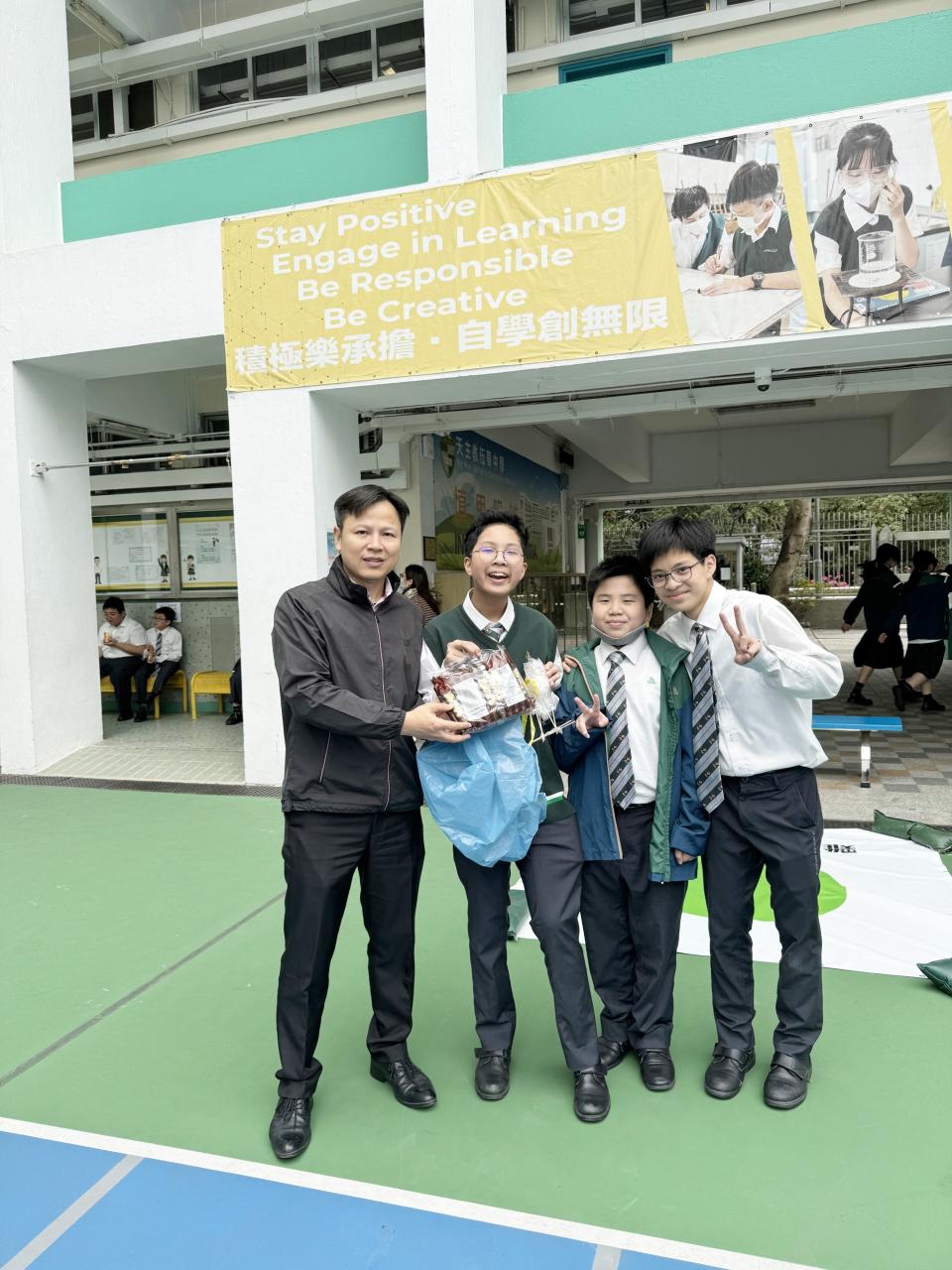 2023-12-21 本年度,中一及中二級進行「雞蛋撞地球比賽」,把一隻「生雞蛋」從學校的三樓向地面墜下來,他們運用有限的物資,為「生雞蛋」設計各形各式的「保護措施」, 務求使「生雞蛋」成為「雞蛋撞地球」後的「生還蛋」。最後,同學成功地完成這次「任務」。中一級丁班除了獲得冠軍外,也獲得了「最具創意獎」。 活動剪影