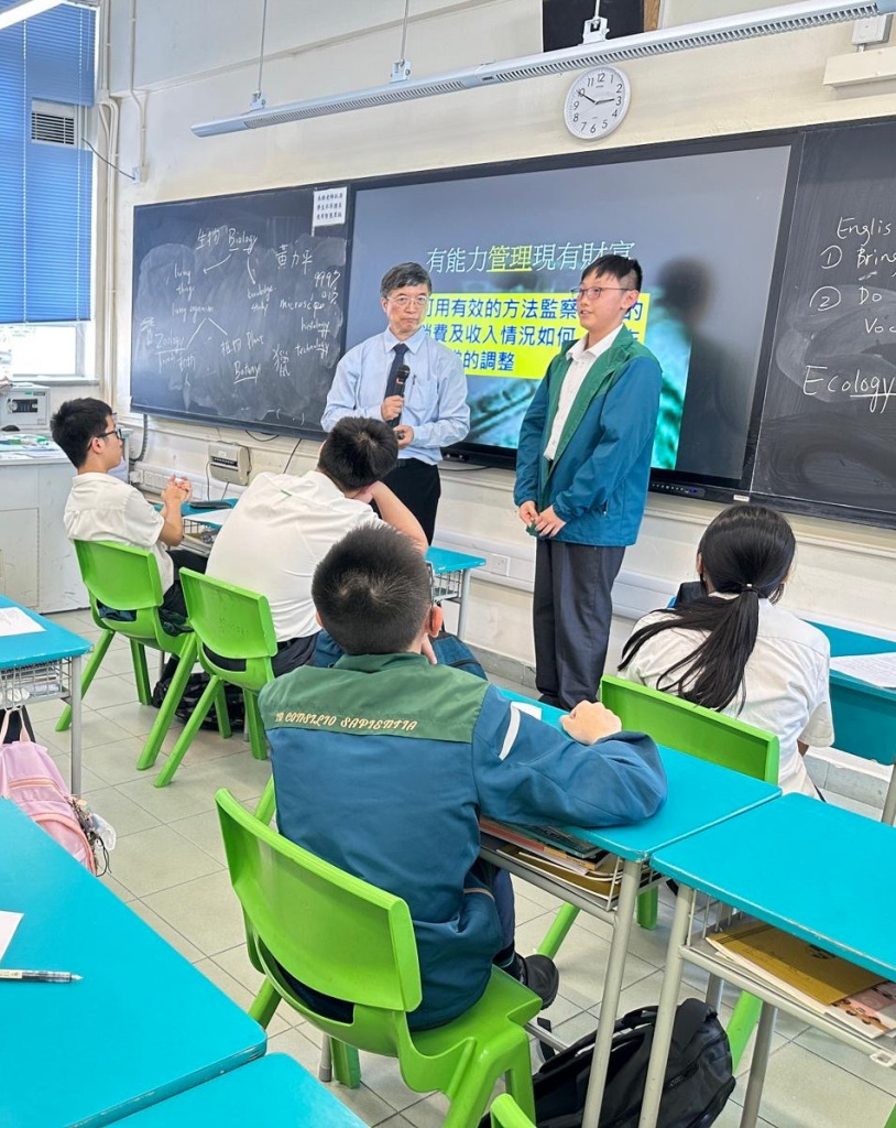 2025-09-18 本校於2025年9月18日邀請香港職業發展服務處為中三同學舉辦理財工作坊。是次工作坊旨在為中三學生提供基礎理財教育,透過互動教學及心理測驗,提升學生理財智商,並引導他們掌握理財管理的基本步驟。活動內容結合理論與實踐,幫助學生建立健康的金錢觀念與管理習慣。 活動剪影