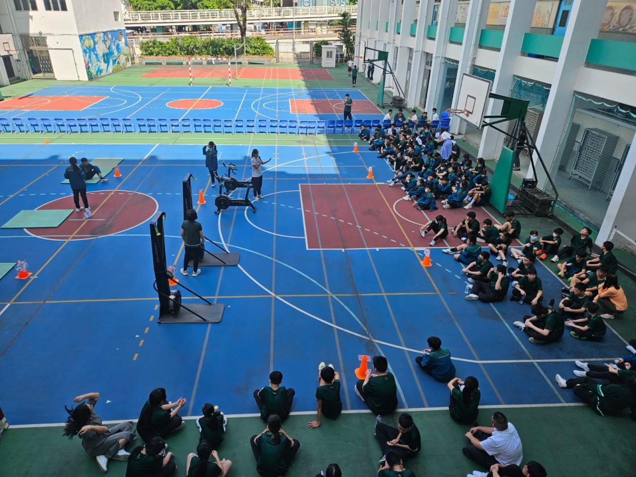 2025-10-16 訓導組今年會與聯健組合作,以級本聯賽的形式舉辦午間活動予中一及中二學生參與,而每次比賽所得的分數將累積於級本聯賽積分榜。每班需完成不同的體能活動,三項體能項目為一條直線,15分鐘內於bingo 卡上面標記最多直線便勝出。 活動剪影