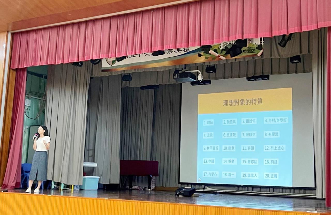 而在講座中,也讓同學嘗試認識自己對愛情的想法,從 而 建 立 健 康 和 諧 的 兩 性 關 係 。無怪乎同學在活動期間都積極回應,投入 討論,且樂於表達。