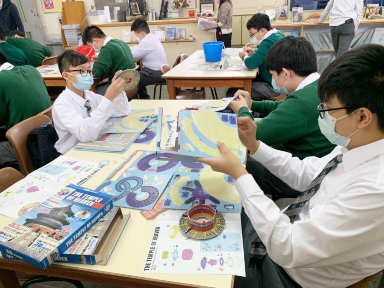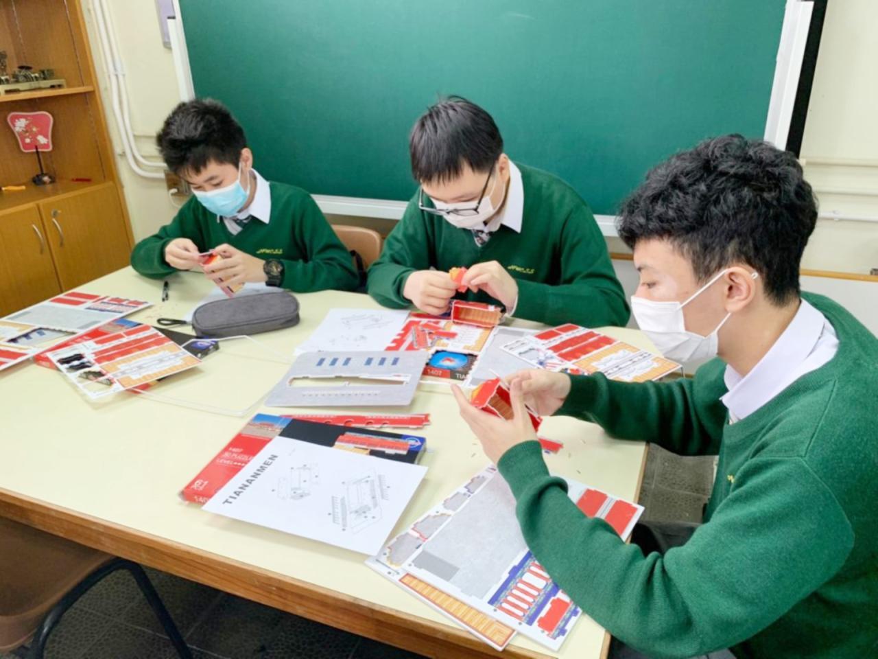 2021-12-15 為了提高學生學習中史的興趣,培養其正面價值觀和態度,中史科與圖書館組合作在12月15日舉辦了「動手學歷史」課堂。在課堂上,有的學生化身考古學家,在模擬考古活動中了解秦朝的軍備;有的學生化身建築大師,搭建天安門、天壇、長城等模型。學生們亦以此次課堂為契機,翻閲圖書館相關書籍,進一步增加了自己的知識。有趣的動手課堂不僅令學生們不受疫情所限,博覽古今,更令他們深刻領略了中國悠長的歷史文化。 活動剪影