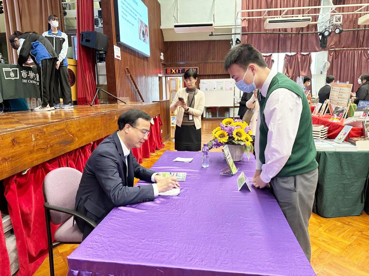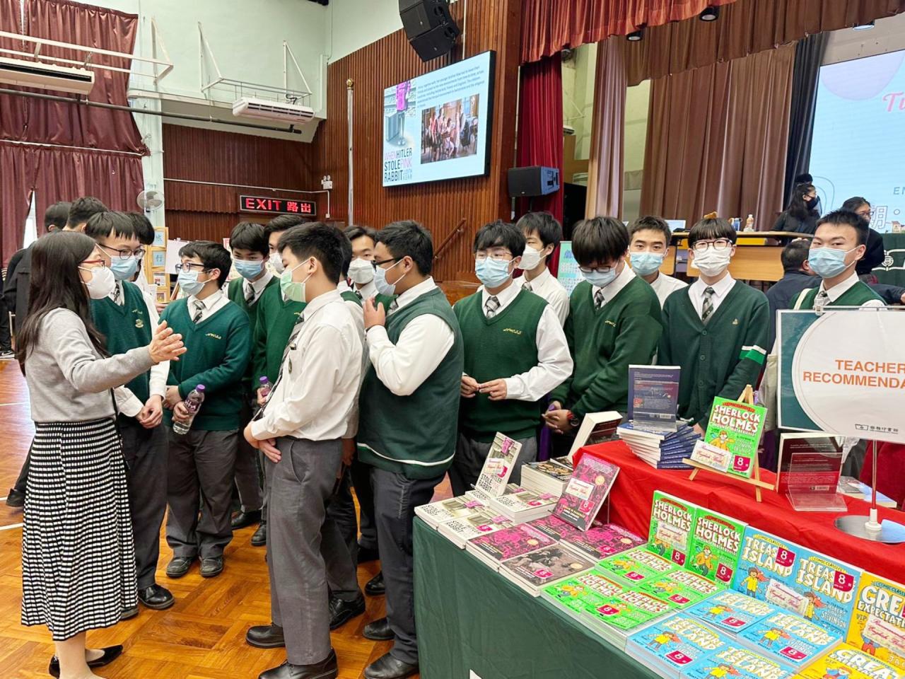 2023-03-02 為推動閲讀風氣,提高學生的閱讀興趣,推廣閱讀組於3月2日帶 領了14位同學參觀由屯門天主教中學舉辦的書展。活動中,同學們參 加了資深傳媒人鍾志光先生「師生情永在」的主題講座,參觀了書展 並選購了心儀書籍。透過與友校的閲讀交流,同學們增廣了見聞,提 升了閲讀的興趣。 活動剪影