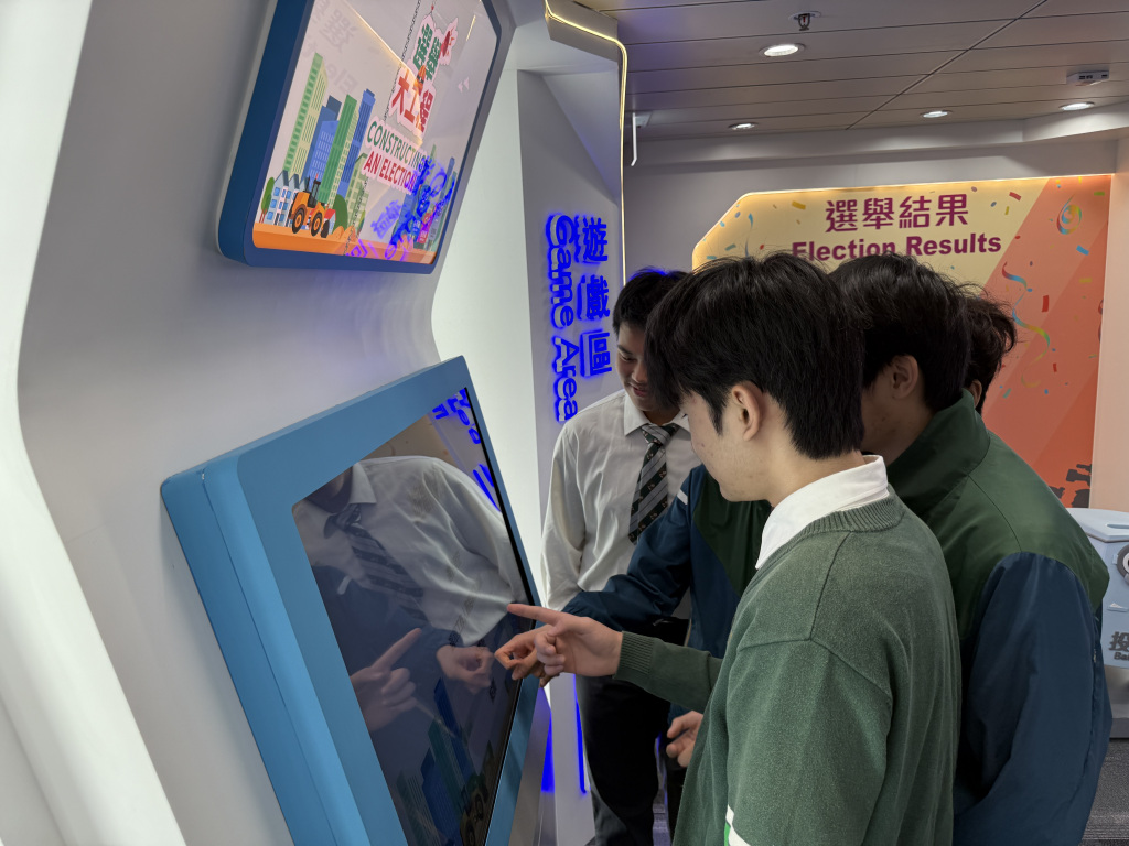 2025-11-22 《憲法》和《基本法》學生校園大使於11月22日參觀選舉資訊中心,選舉事務處人員講解各項選舉資訊,包括香港特別行政區的選舉制度、選管會職能、投票過程及點票程序,讓他們對籌備整個選舉的過程有更深入的認識。同時,大使亦參與了選舉資訊中心內不同的互動遊戲,活動加強他們對國民身分的認同及加深他們的公民責任。 活動剪影