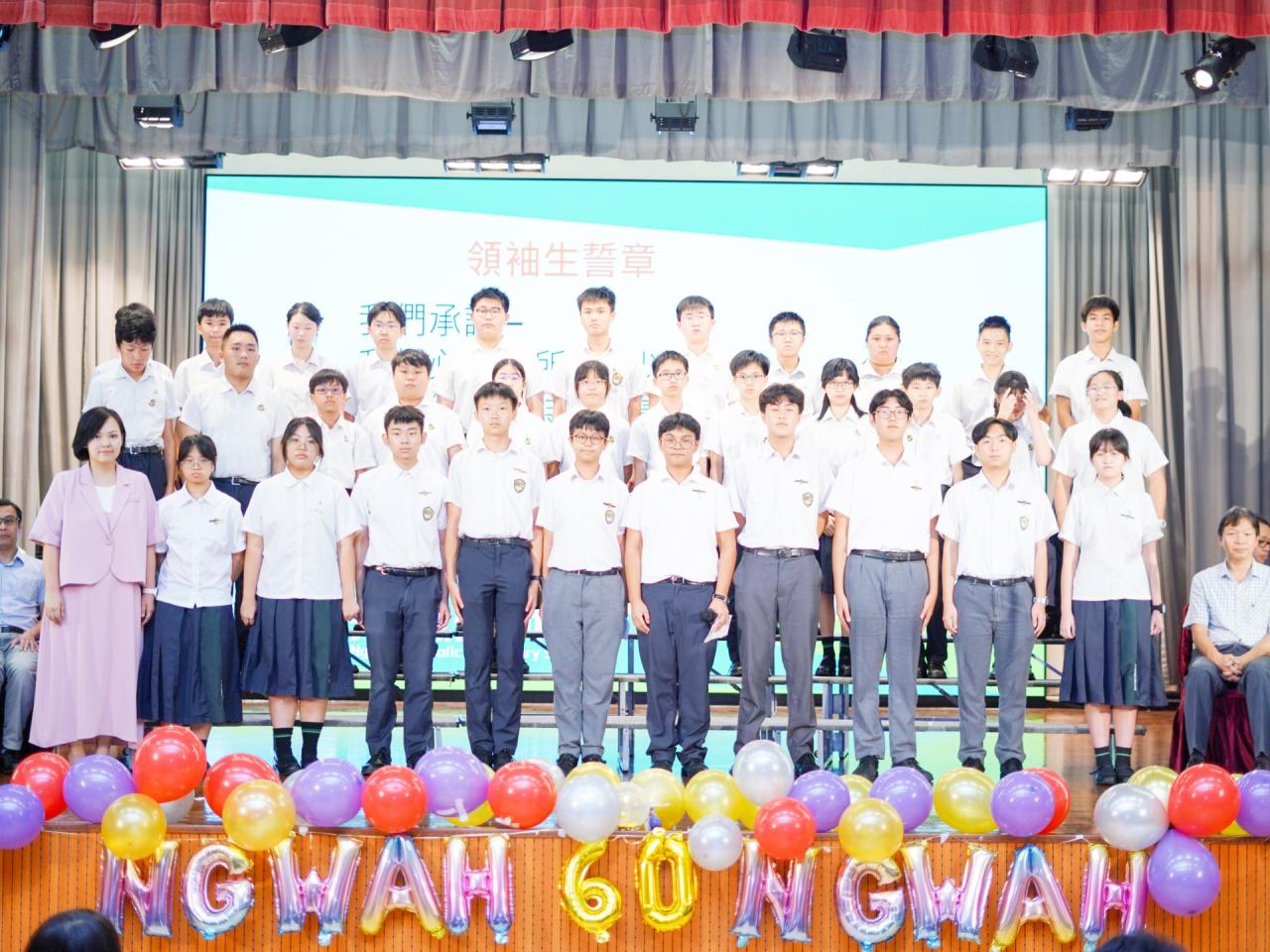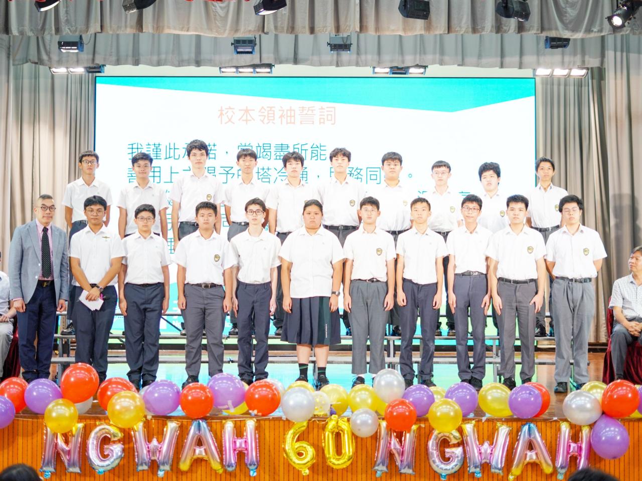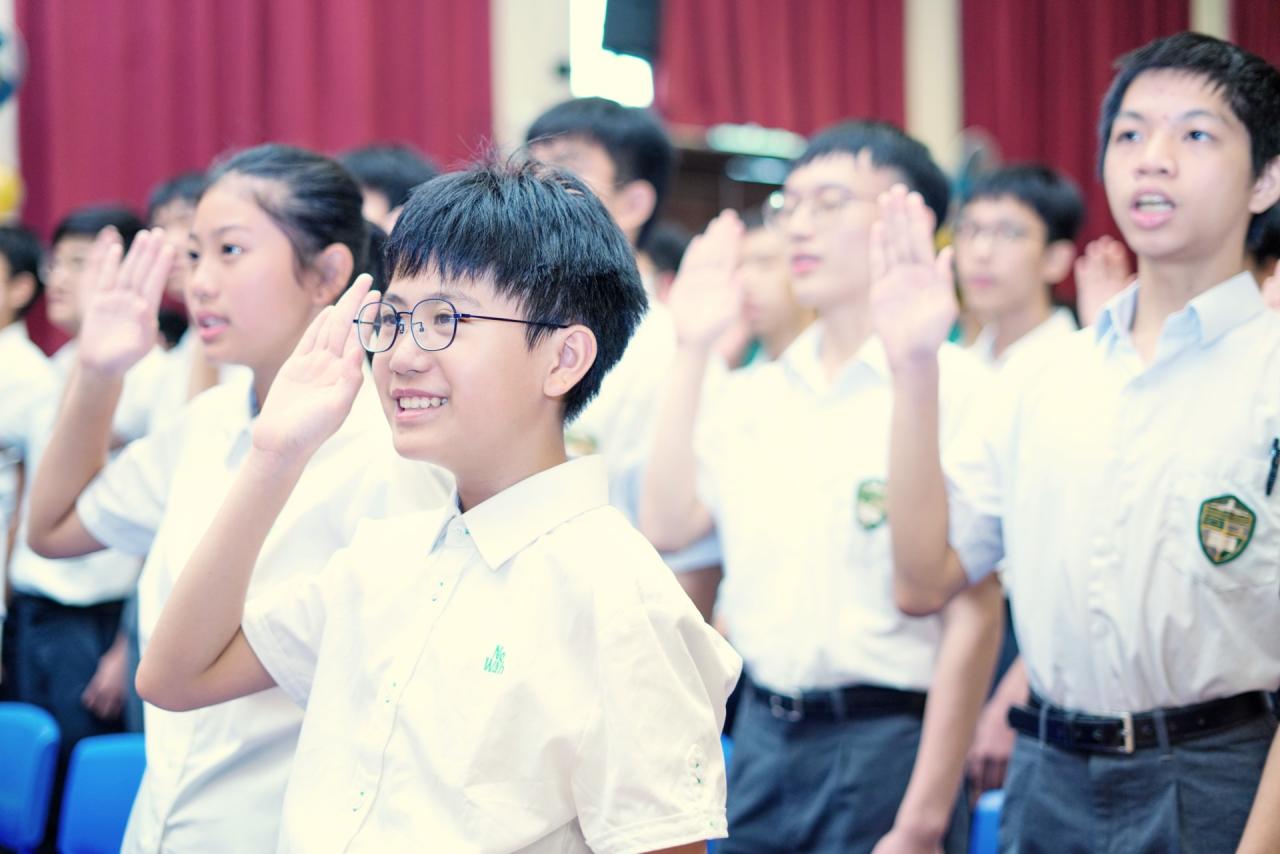 2024-09-24 本校於2024年9月24日舉行2024-2025年度學生領袖就職典禮。典禮上,學生會、領袖生、級社、校本領袖及一人一職班本領袖在三位副校長的監誓下宣誓就職,承諾為學校及同學服務。 今年學校主題為「健康人生,心寬志強,積學活用,生涯閃亮」,鼓勵學生領袖以開闊胸襟、堅毅意志服務學校,將所學應用於生活中。 典禮同時舉行「我的行動承諾──全港同『諾』禮」活動,全體師生一同宣讀承諾,表達感恩珍惜、積極樂觀的生活態度。 校長亦透過影片致訓勉詞,為學生領袖帶來啟發和鼓舞。 活動剪影