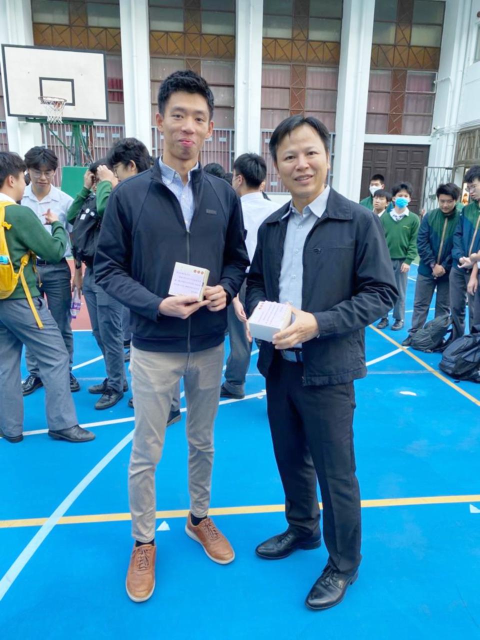 2023-11-21 家教會為了答謝本校老師及職工默默付出以及無私奉 獻,於 21/11 早會舉辦「家長也敬師活動」,致送曲奇 及茶包予全體教職員,以表心意。 老師們收到家教會致送的禮物 家教會委員與校長及三位副校長拍照留念 家教會主席李羅加旭女士致送禮物予校長 各班班長代表致送禮物予班主任,並拍照留念 班長們代表致送禮物,同學們拍掌答謝老師們的付出 活動剪影