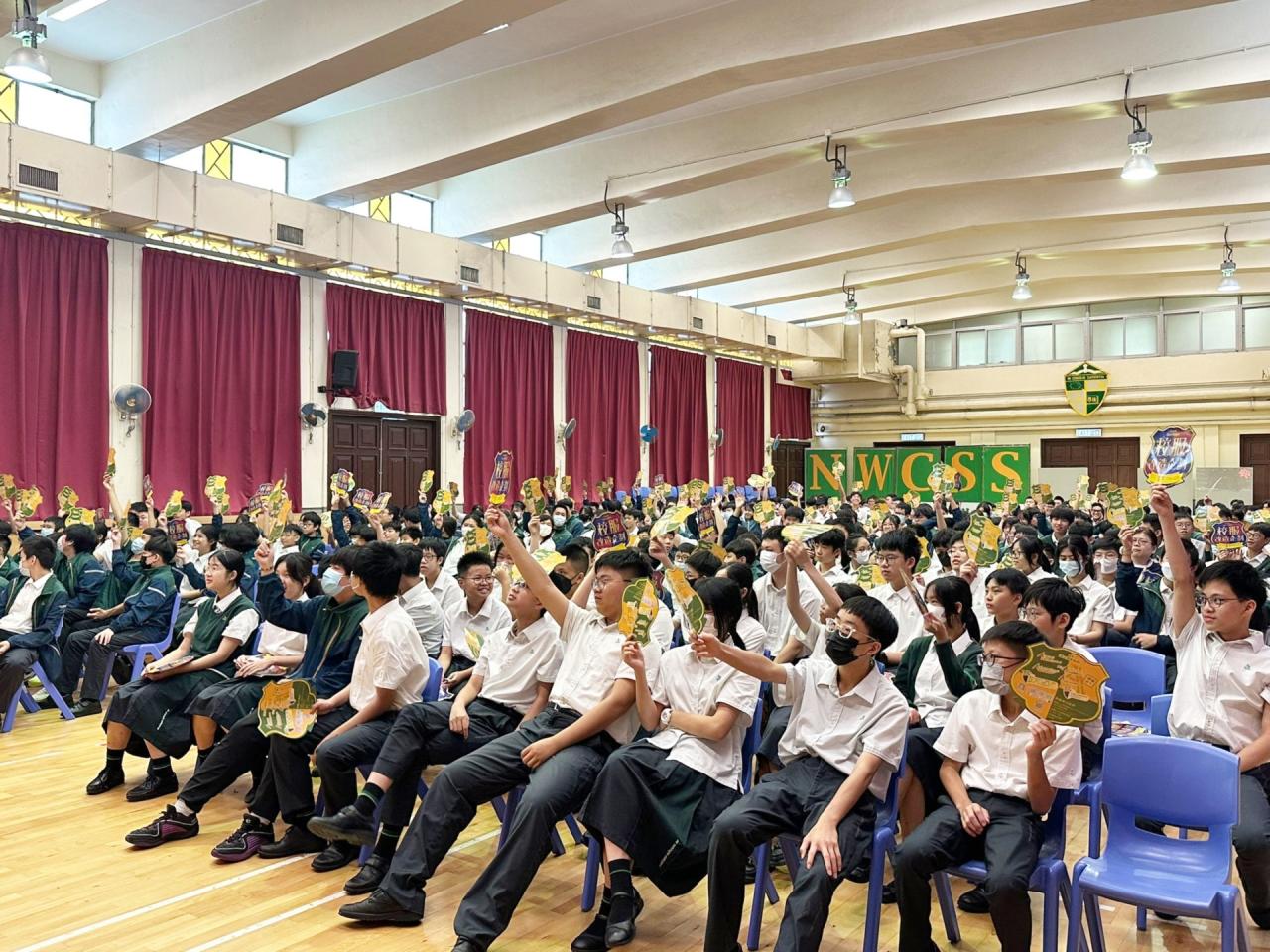 由廉署安排專業劇團到校演出互動倡廉話劇,帶出貪污禍害、 如何處理誠信挑戰及守法和尊重法治的重要性。