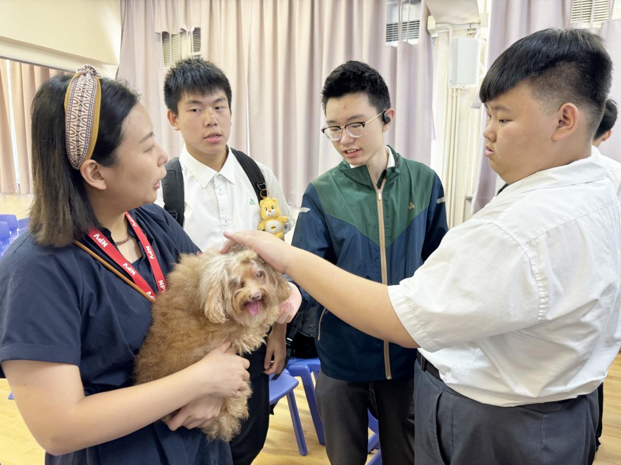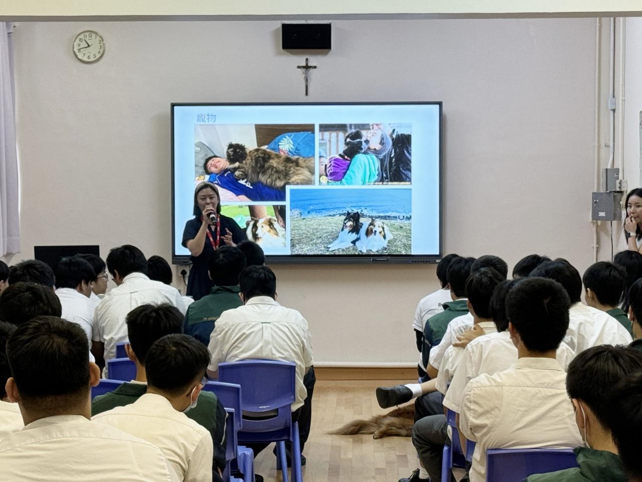 2024-06-17 訓導組邀請非牟利獸醫服務協會的義工到臨學校,為學生講解城市裏居住的社區動物及野生動物的生存狀況,讓學生了解流浪動物的權益,從而提升學生對動物的關注及同理心。學生在活動中亦投入與動物接觸相處。 活動剪影