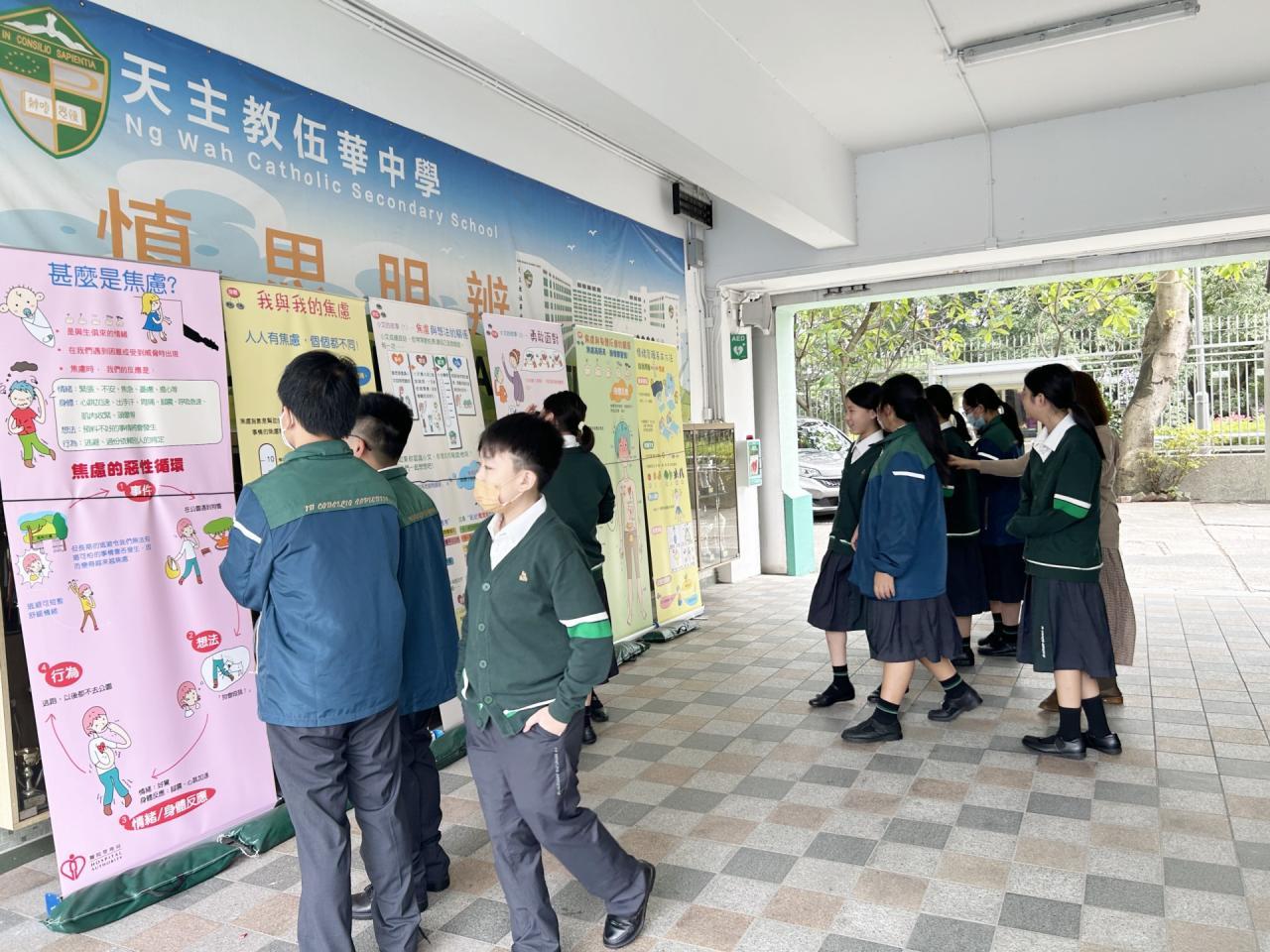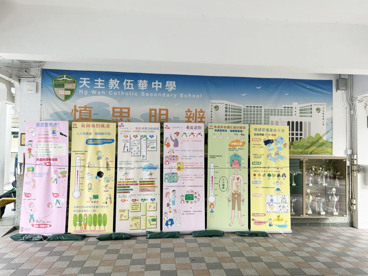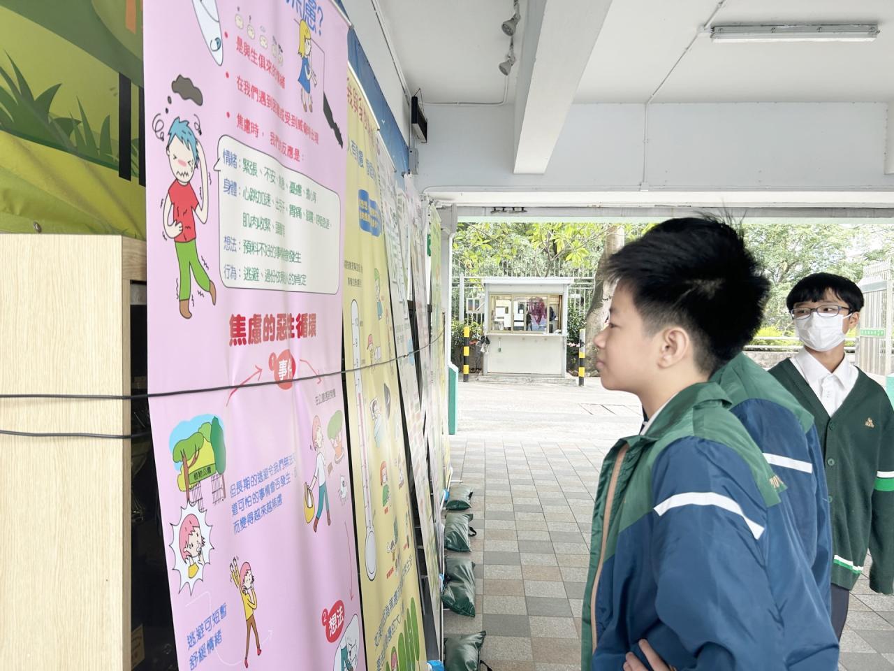 2023-11-16 為讓同學認識情緒,學習提升精神健康的方法。輔導組於11月13至16日,於午膳時間,透過展覽及問答遊戲,聚焦讓同學認識——焦慮是一種與生俱來的情緒,從而學習如何面對,以及提升精神健康。例如:經常強健身體,保持良好的體格,這不單是自律自愛、盡責任的表現,更是與精神健康相輔相成、互為一致。而在活動期間,同學們都踴躍參與,積極填寫網上問答遊戲,氣氛熱烈。相信若大家都能提升精神健康,對學業社交各方面的發展,均能相得益彰。 活動剪影
