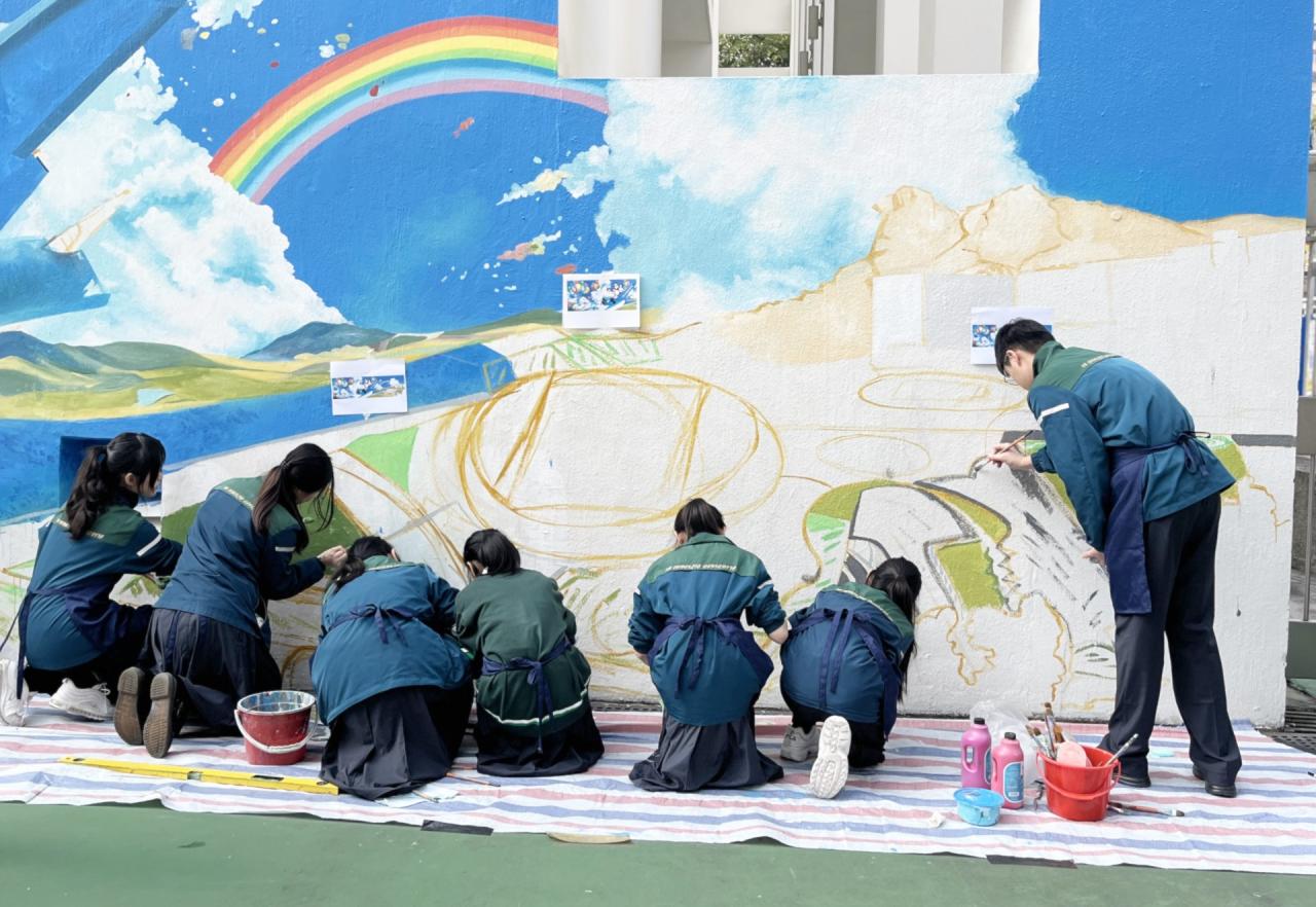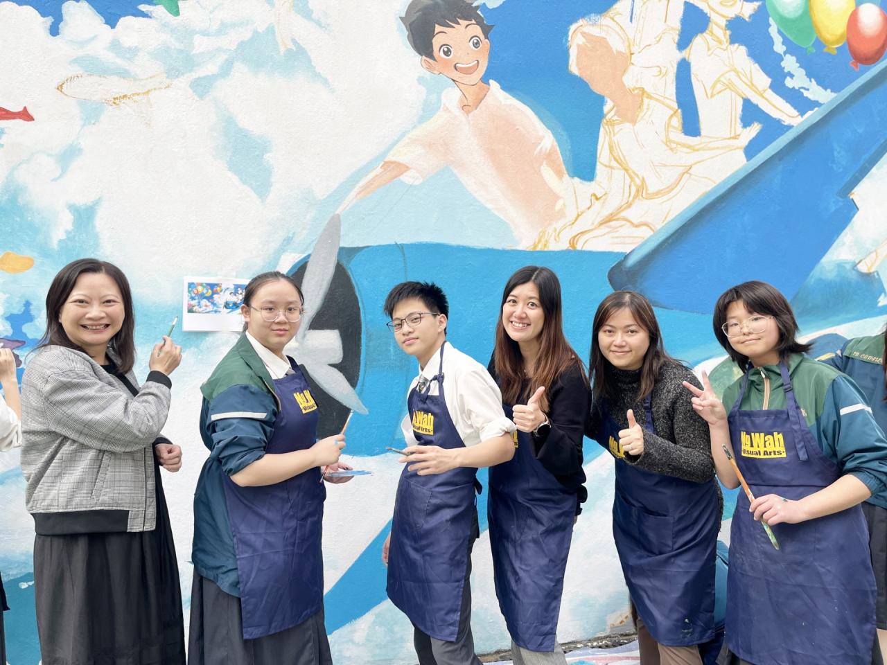 2025-05-08 本校20多位中二及中三同學參與壁畫工作坊,為美化伍華校園出一份力。 壁畫將伍華與黃大仙區及啟德社區連繫起來,並象徵學校在過去60年不斷創新和變革,適應時代的變遷, 展現伍華的活力,更鼓勵學生勇於追夢,無論面對任何挑戰,都能高飛遠翔。 活動剪影