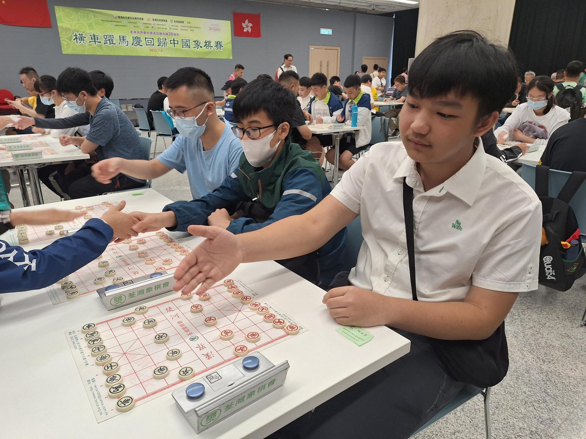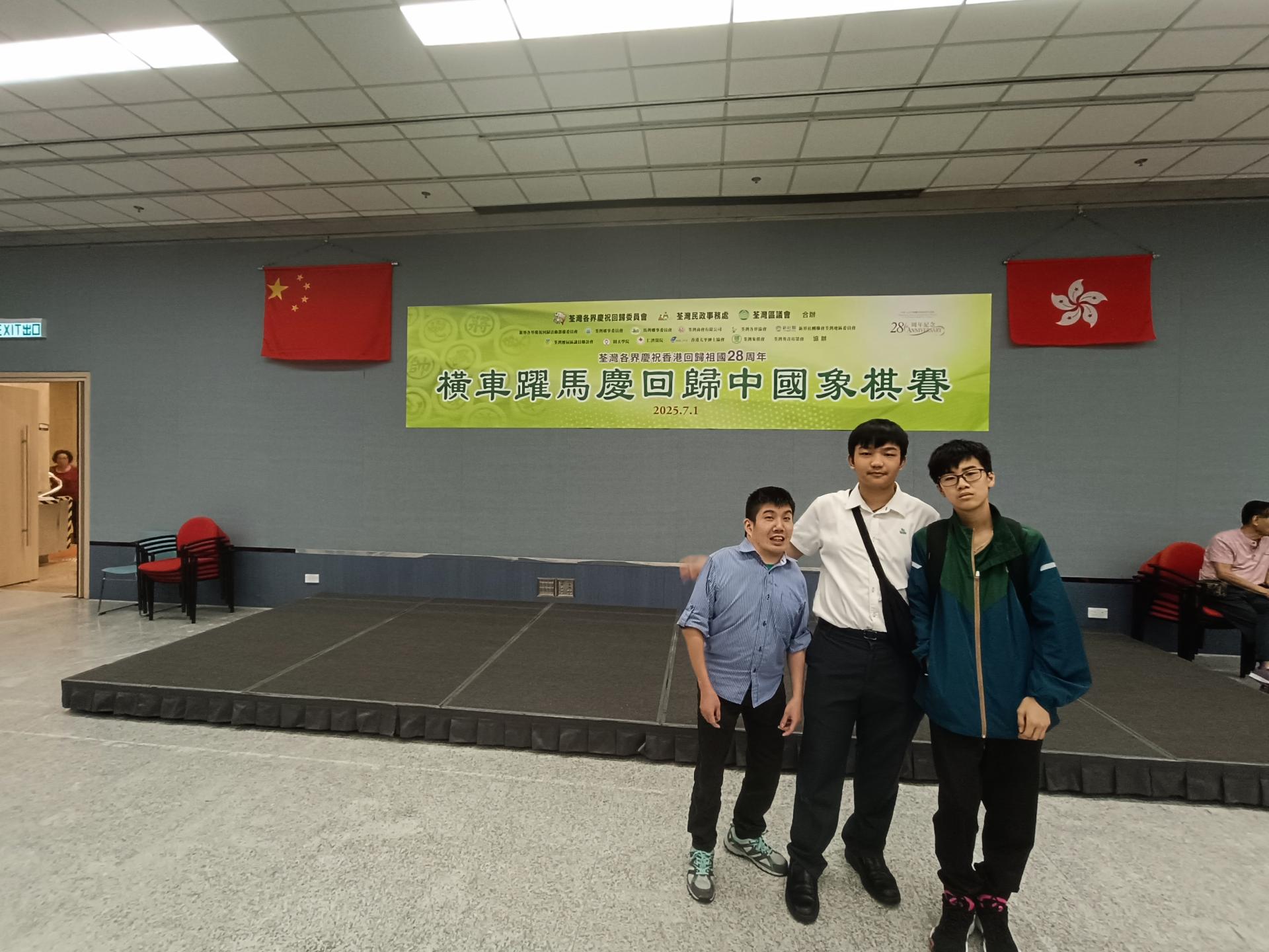 2025-07-31 為慶祝香港回歸祖國28周年,弘揚國粹,推動中國象棋文化,荃灣各界慶祝回歸委員會、荃灣民政事務處、荃灣區議會等合辦「橫車躍馬慶回歸中國象棋賽」。本校分別有兩名中二同學及一名老師參加青年組及公開組賽事。賽事共進行七輪,同學表現積極,並獲取不少棋藝比賽的經驗。 活動剪影
