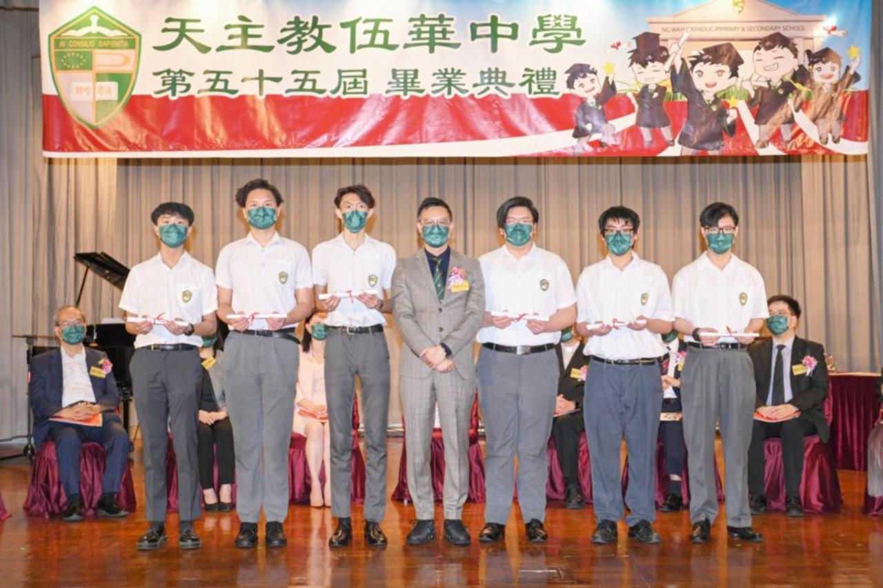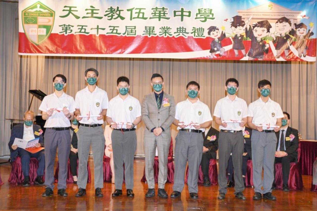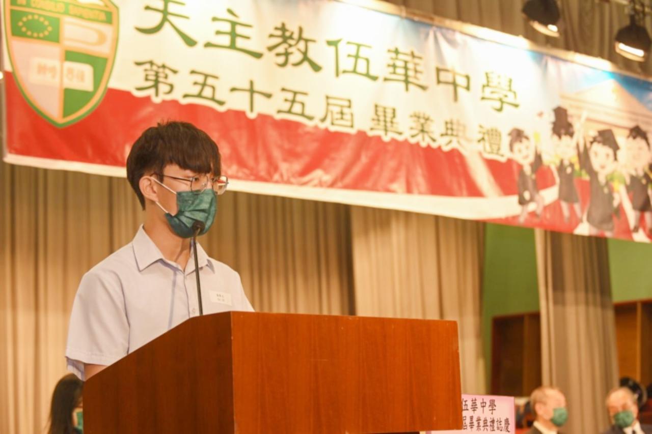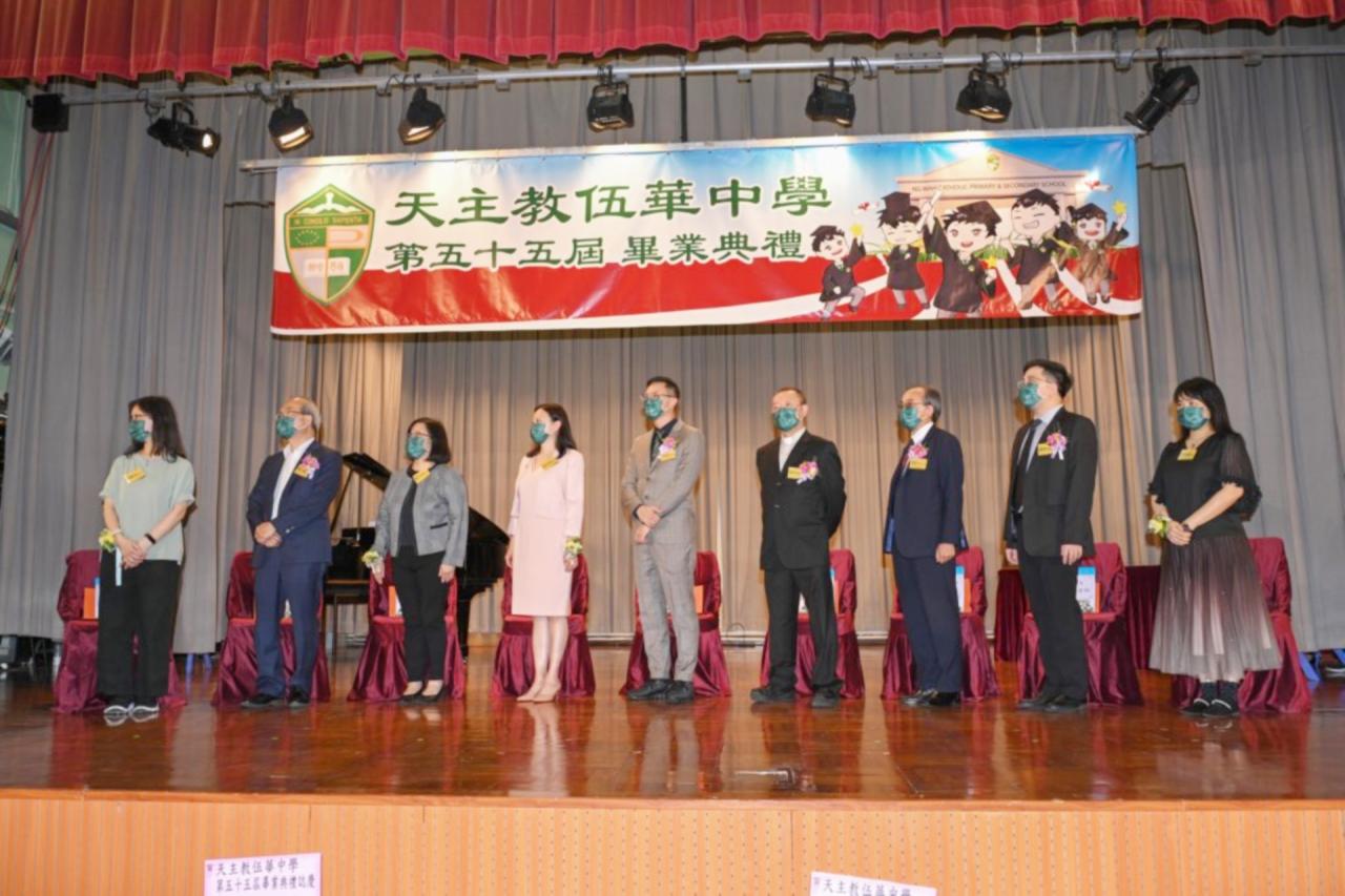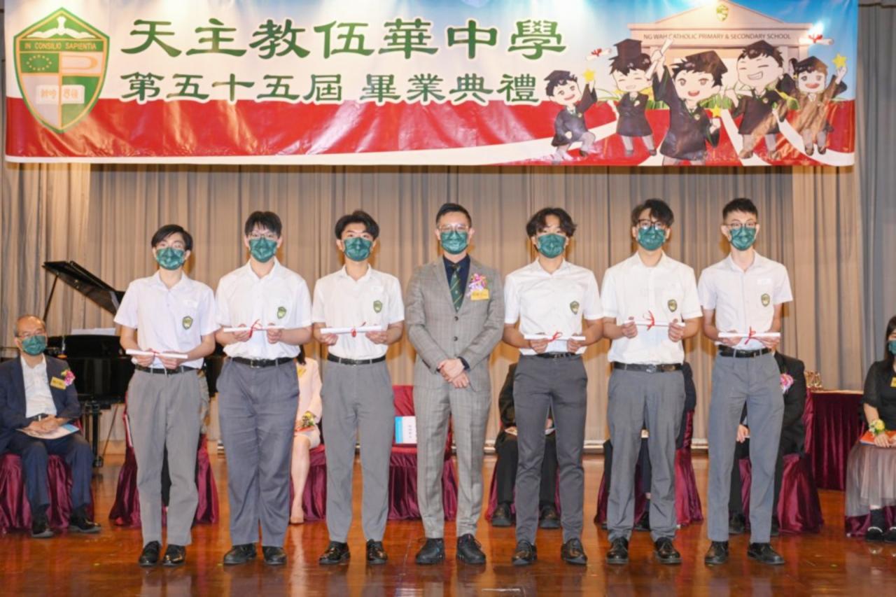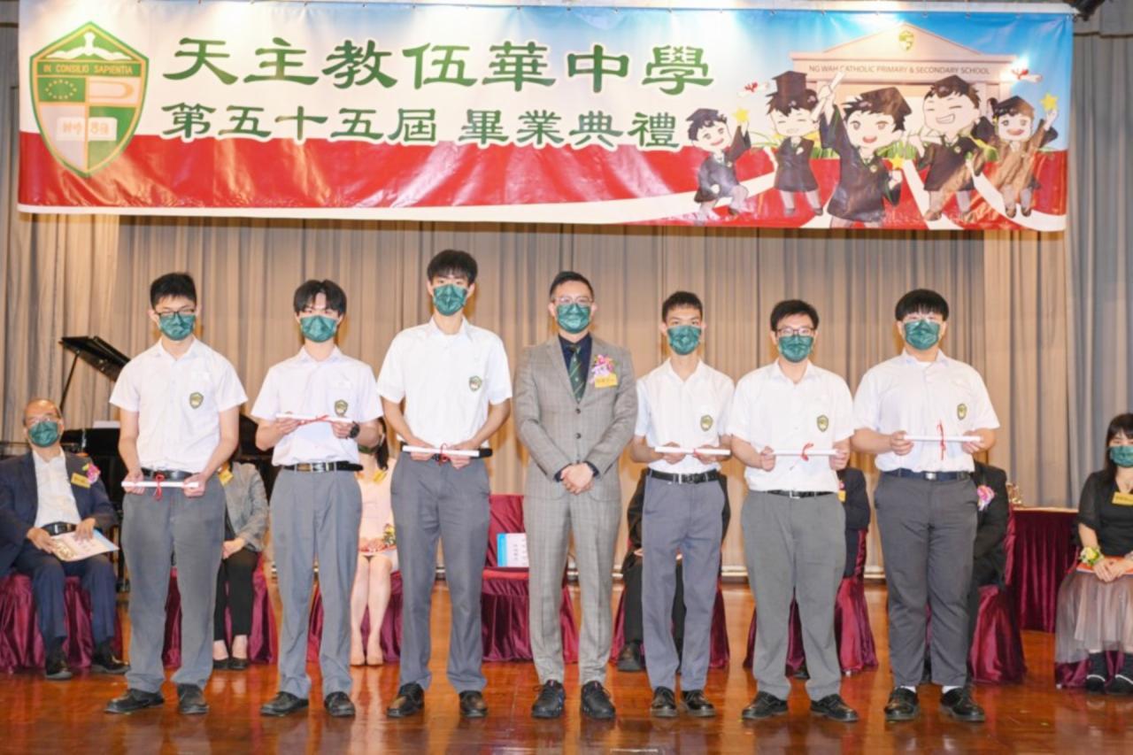 2022-06-25 第五十五屆畢業典禮於二零二二年六月二十五日隆重舉行。 典禮由校監陳德雄神父領禱開始,然後主禮嘉賓呂達文先生致訓辭,他勉勵學弟堅持追求自己夢想,保持熱情,終能邁向成功。接著呂達文先生向全體畢業生頒授畢業証書,而校監陳神父頒授教職員長期服務獎,感謝他們多年的努力付出,場內掌聲雷動,把整個畢業典禮氣氛推至高峰。 最後,畢業生代表潘慶文同學致辭,及向學校贈送紀念品,感謝師長關愛教導,感激家長和同學相知相伴,並銘記校訓慎思明辨,整個畢業典禮亦於全體師生合唱校歌下正式落幕。 活動剪影