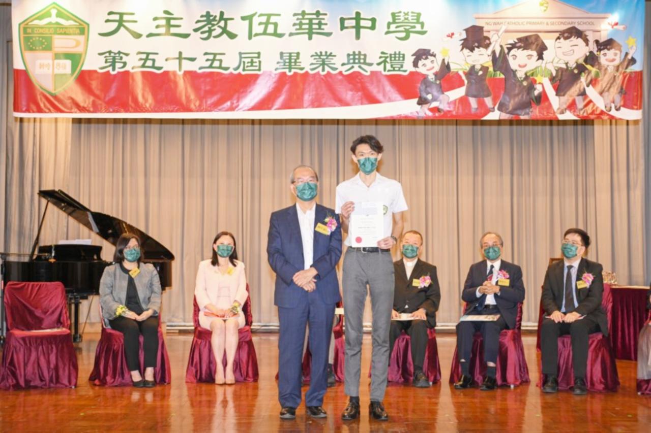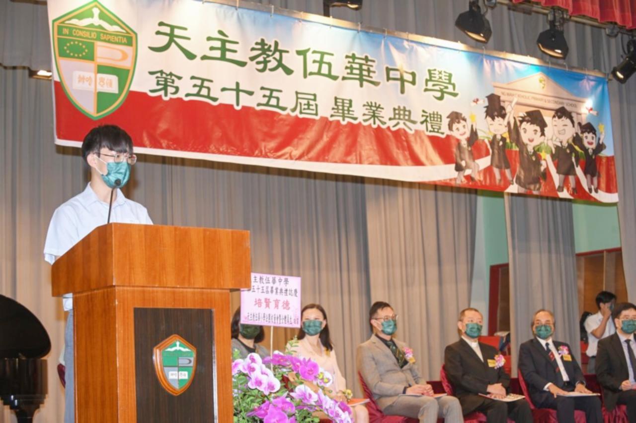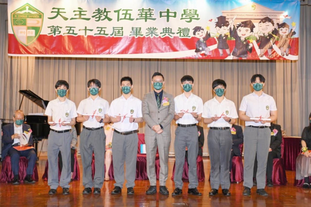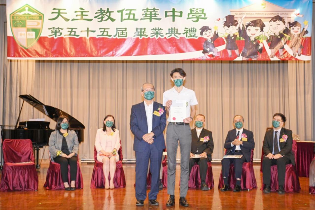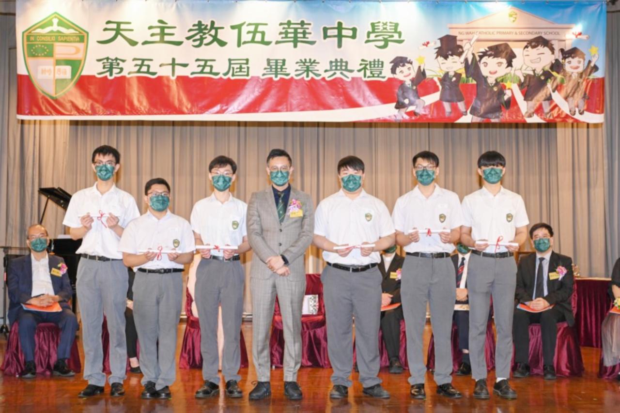 2022-06-25 第五十五屆畢業典禮於二零二二年六月二十五日隆重舉行。 典禮由校監陳德雄神父領禱開始,然後主禮嘉賓呂達文先生致訓辭,他勉勵學弟堅持追求自己夢想,保持熱情,終能邁向成功。接著呂達文先生向全體畢業生頒授畢業証書,而校監陳神父頒授教職員長期服務獎,感謝他們多年的努力付出,場內掌聲雷動,把整個畢業典禮氣氛推至高峰。 最後,畢業生代表潘慶文同學致辭,及向學校贈送紀念品,感謝師長關愛教導,感激家長和同學相知相伴,並銘記校訓慎思明辨,整個畢業典禮亦於全體師生合唱校歌下正式落幕。 活動剪影