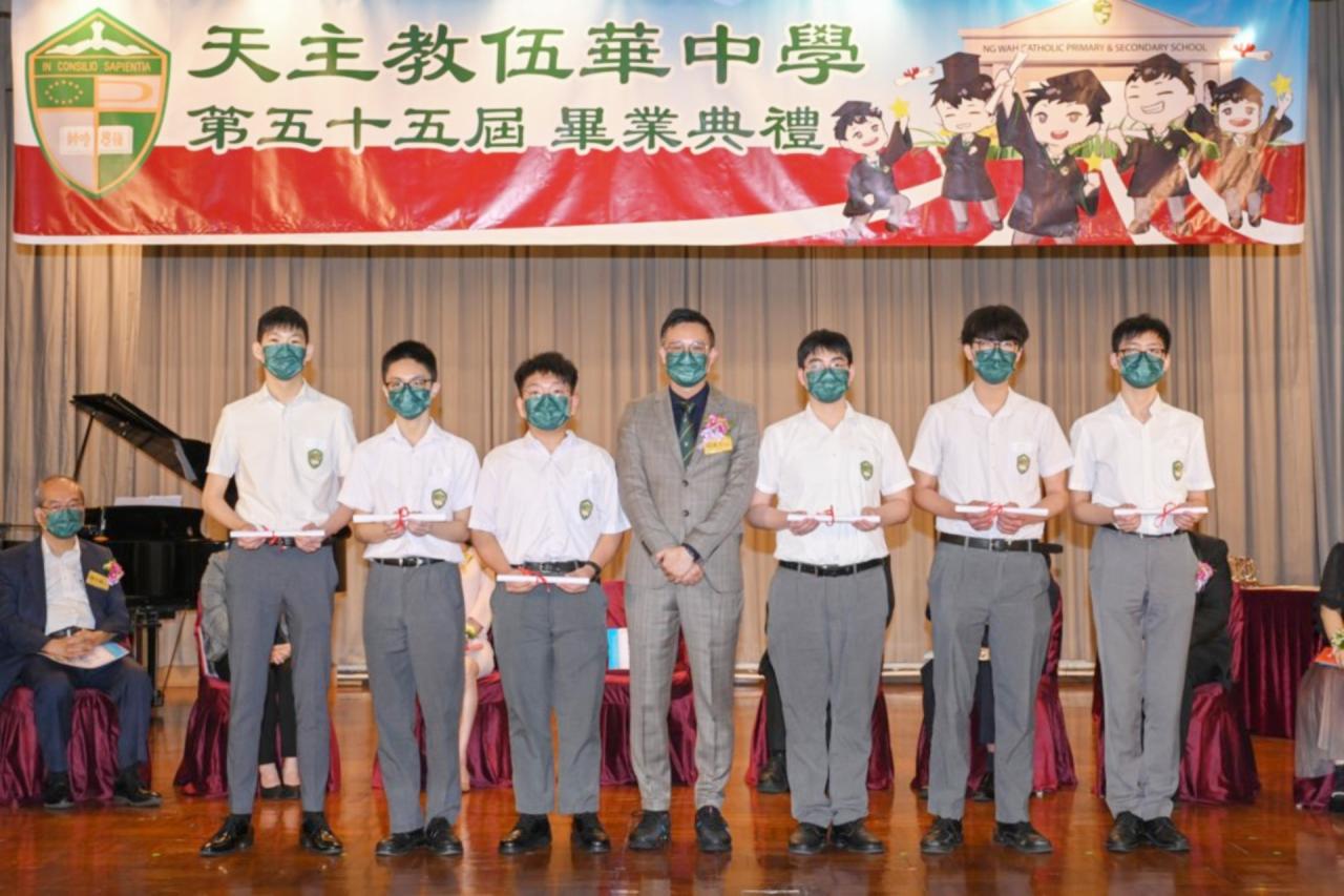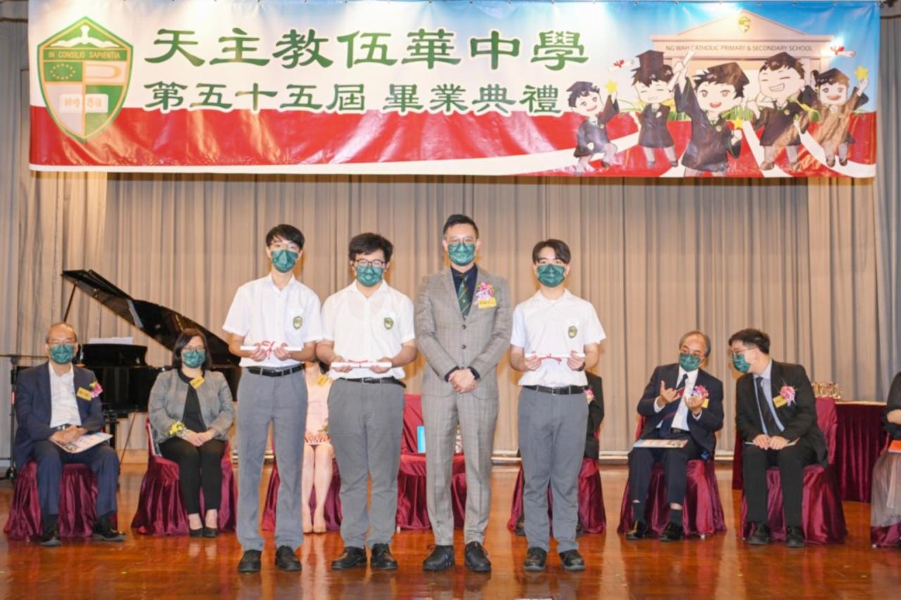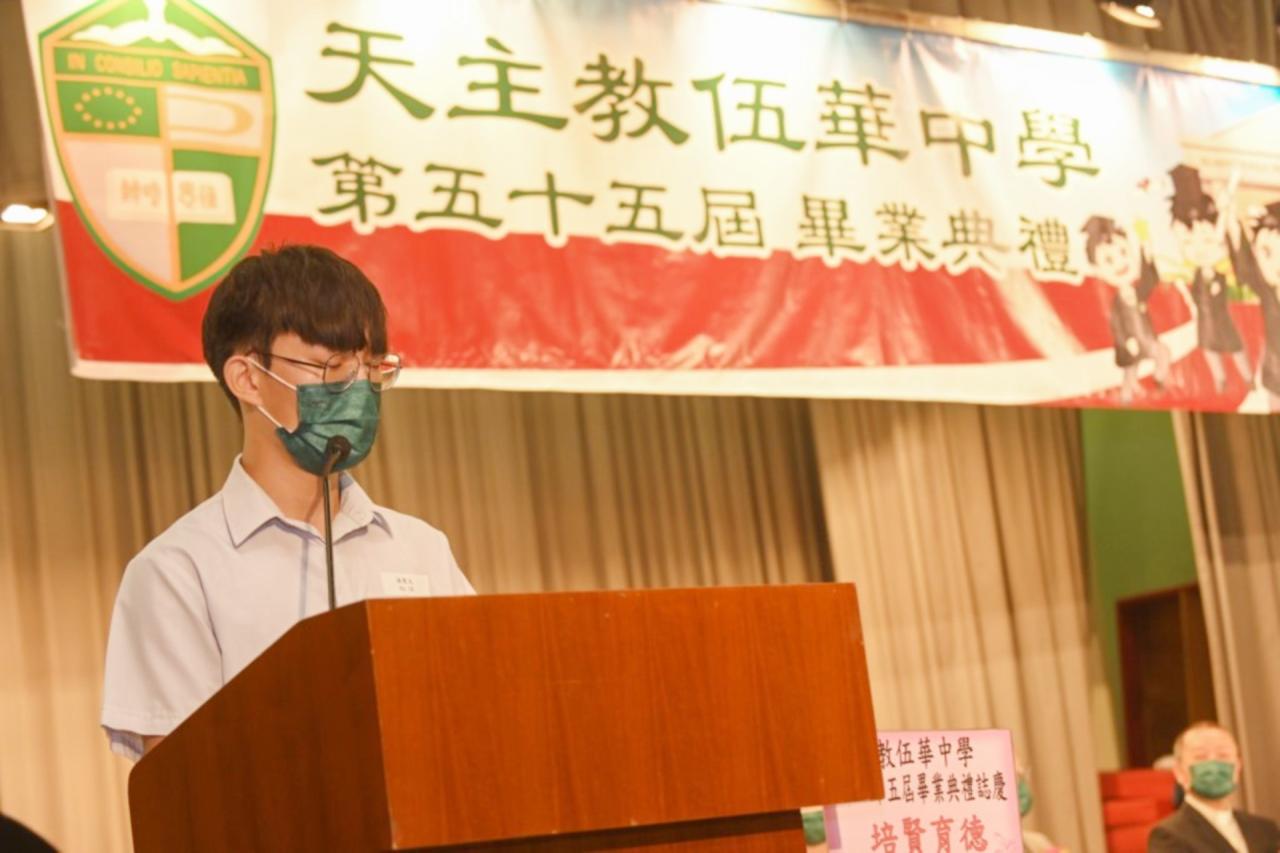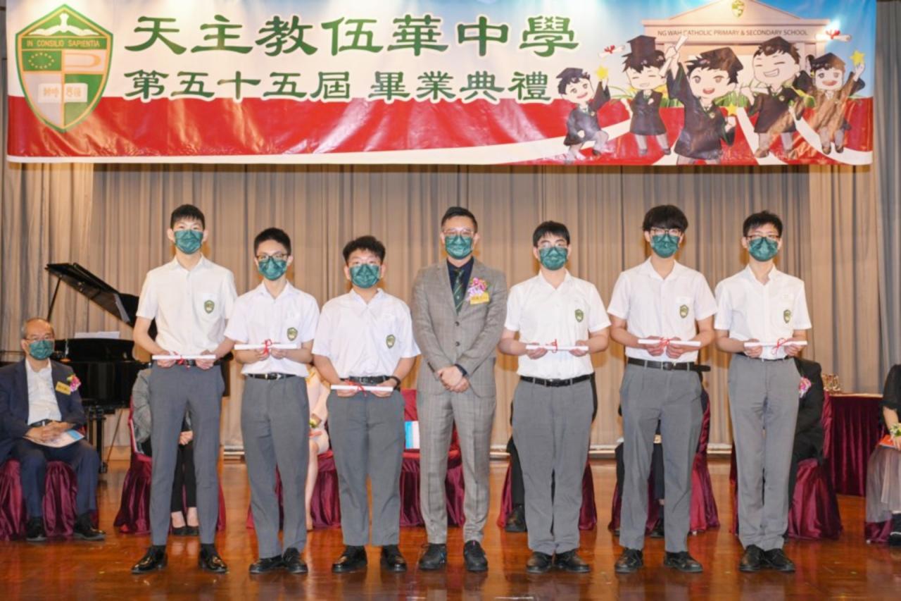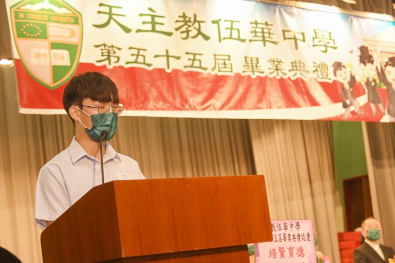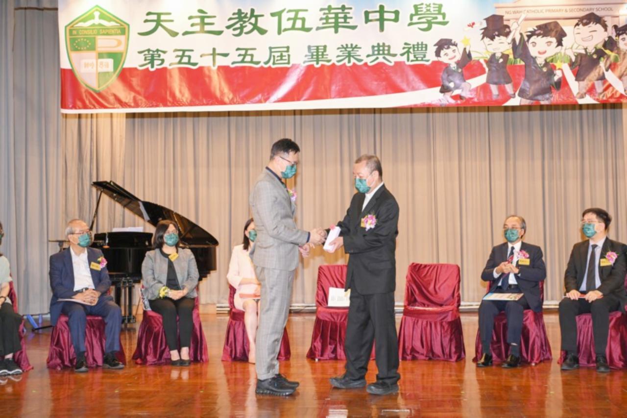 2022-06-25 第五十五屆畢業典禮於二零二二年六月二十五日隆重舉行。 典禮由校監陳德雄神父領禱開始,然後主禮嘉賓呂達文先生致訓辭,他勉勵學弟堅持追求自己夢想,保持熱情,終能邁向成功。接著呂達文先生向全體畢業生頒授畢業証書,而校監陳神父頒授教職員長期服務獎,感謝他們多年的努力付出,場內掌聲雷動,把整個畢業典禮氣氛推至高峰。 最後,畢業生代表潘慶文同學致辭,及向學校贈送紀念品,感謝師長關愛教導,感激家長和同學相知相伴,並銘記校訓慎思明辨,整個畢業典禮亦於全體師生合唱校歌下正式落幕。 活動剪影