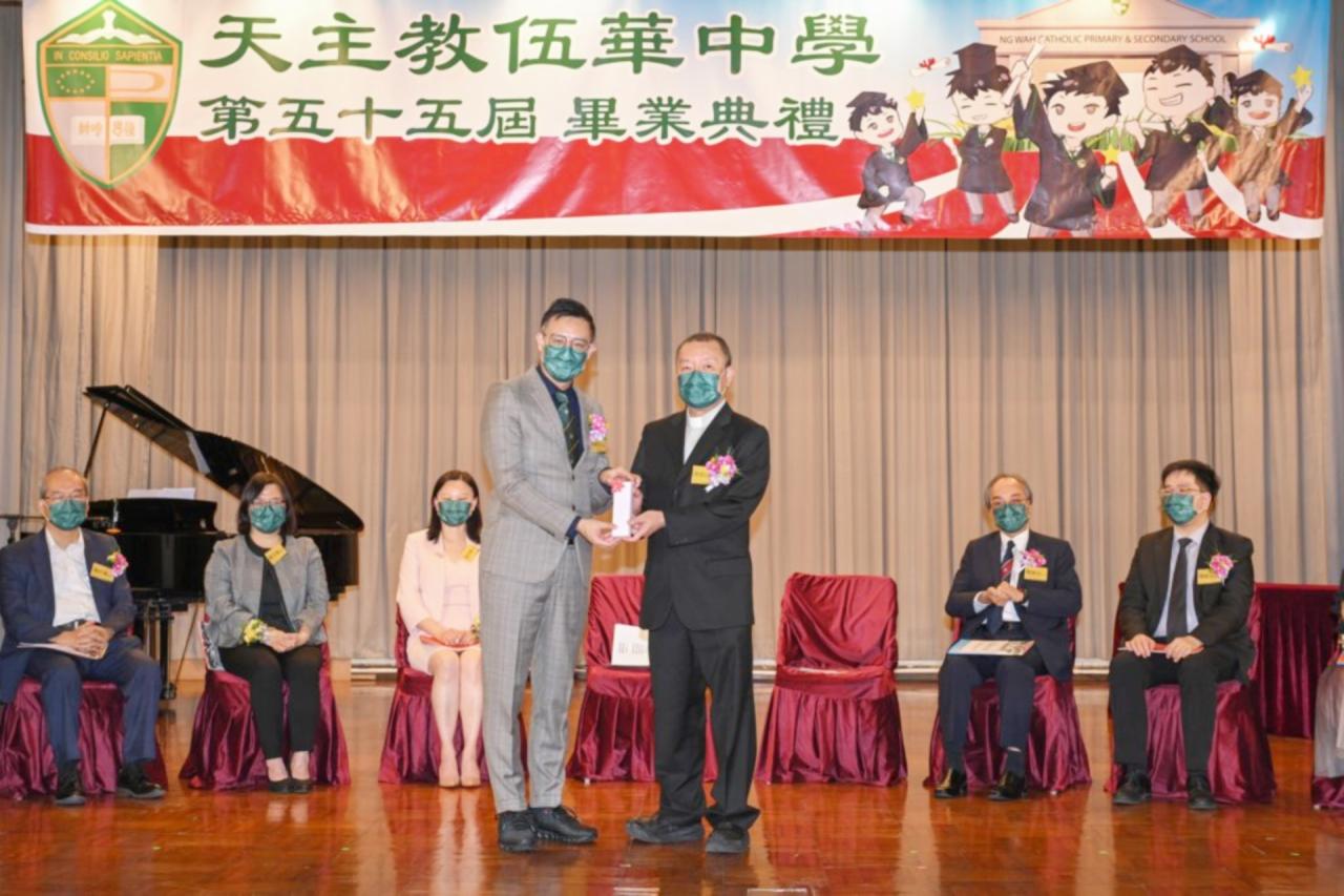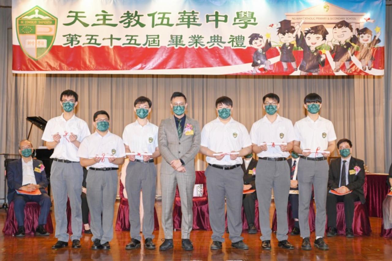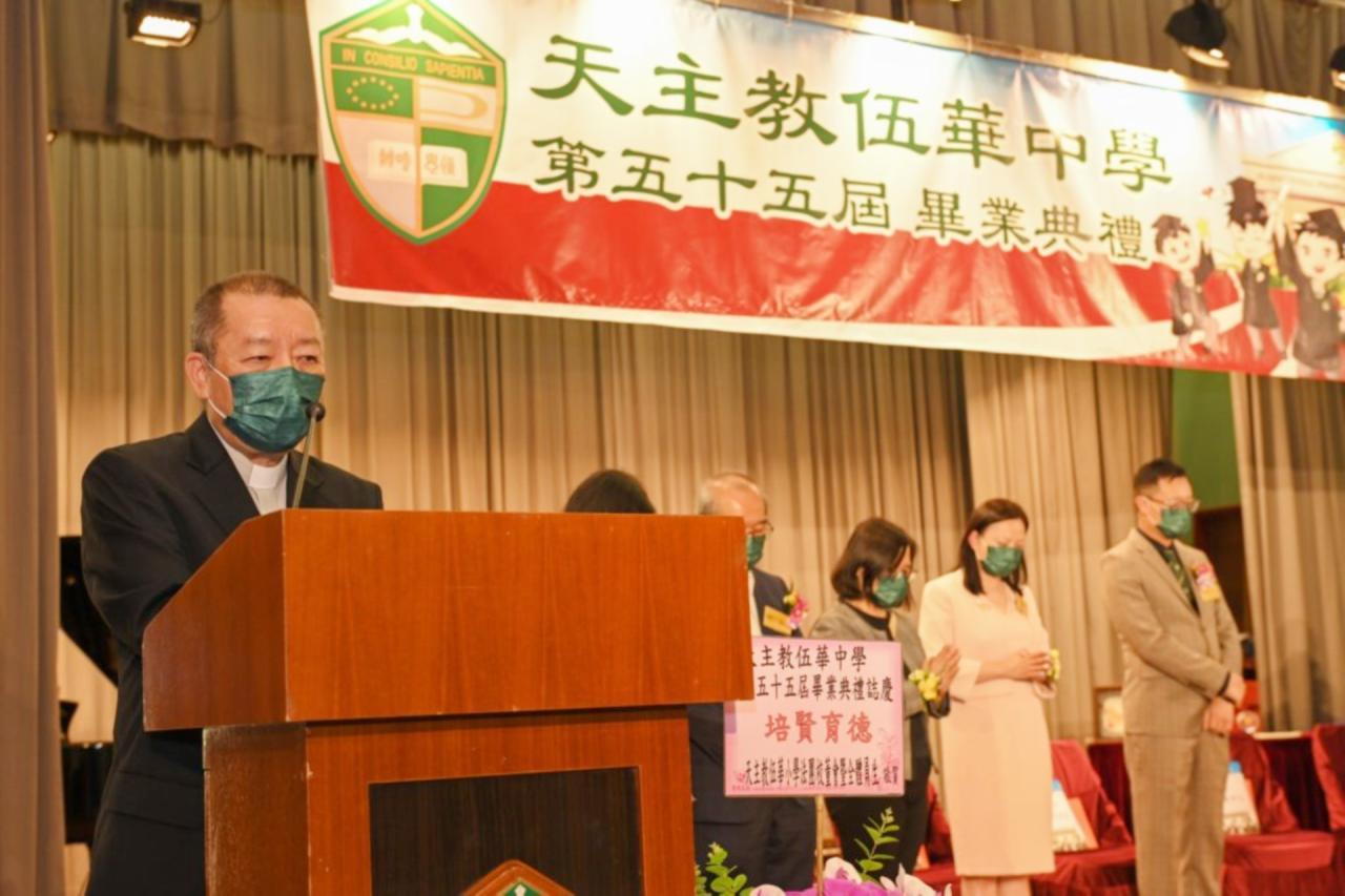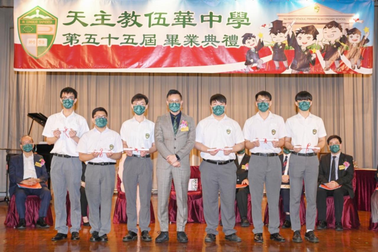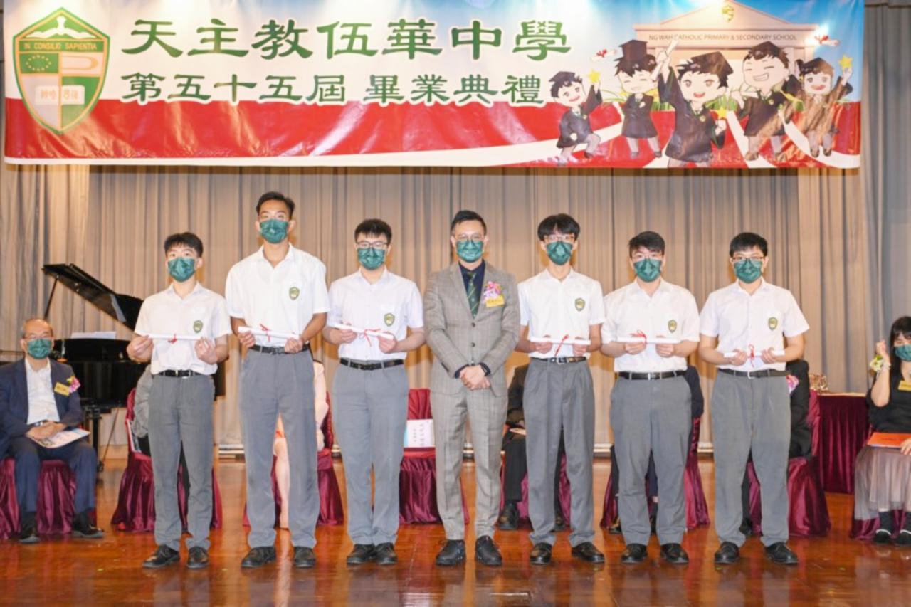 2022-06-25 第五十五屆畢業典禮於二零二二年六月二十五日隆重舉行。 典禮由校監陳德雄神父領禱開始,然後主禮嘉賓呂達文先生致訓辭,他勉勵學弟堅持追求自己夢想,保持熱情,終能邁向成功。接著呂達文先生向全體畢業生頒授畢業証書,而校監陳神父頒授教職員長期服務獎,感謝他們多年的努力付出,場內掌聲雷動,把整個畢業典禮氣氛推至高峰。 最後,畢業生代表潘慶文同學致辭,及向學校贈送紀念品,感謝師長關愛教導,感激家長和同學相知相伴,並銘記校訓慎思明辨,整個畢業典禮亦於全體師生合唱校歌下正式落幕。 活動剪影