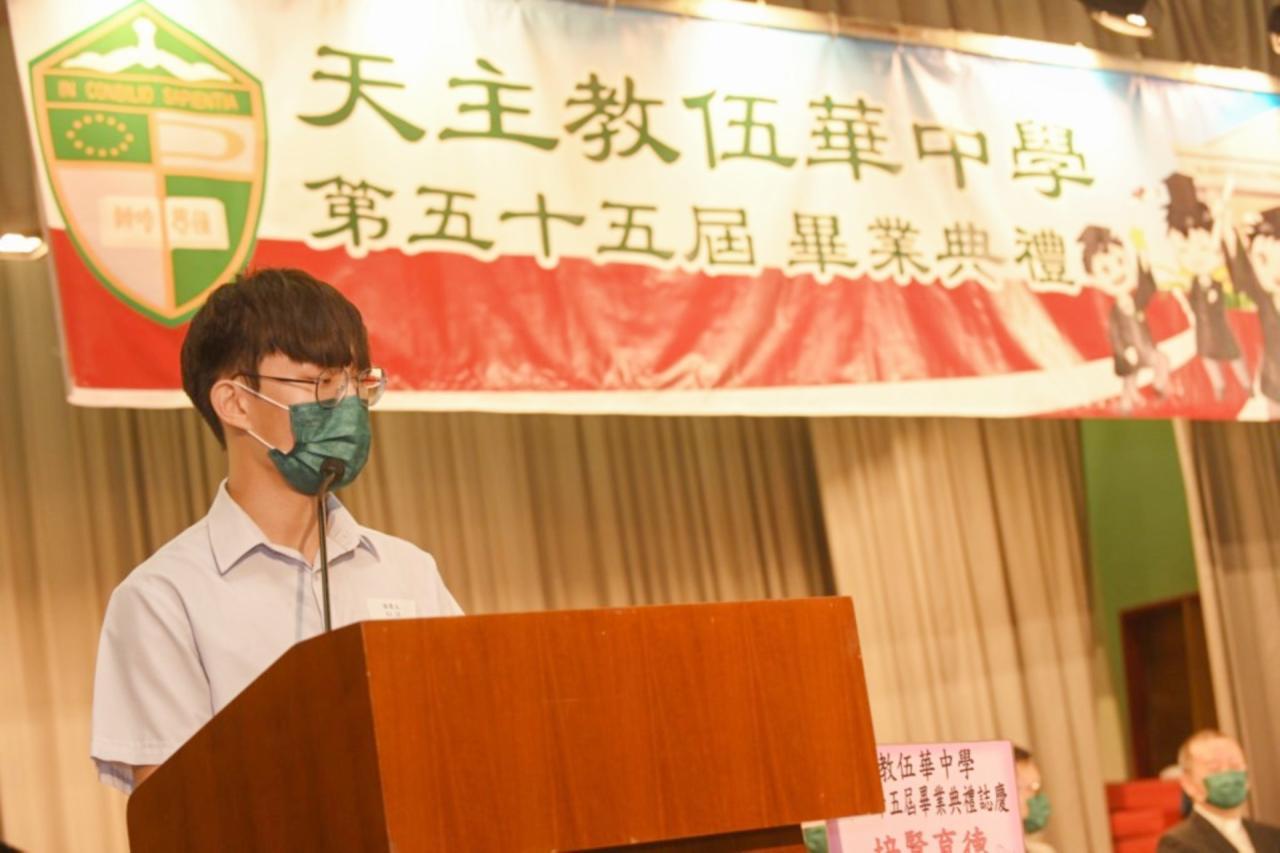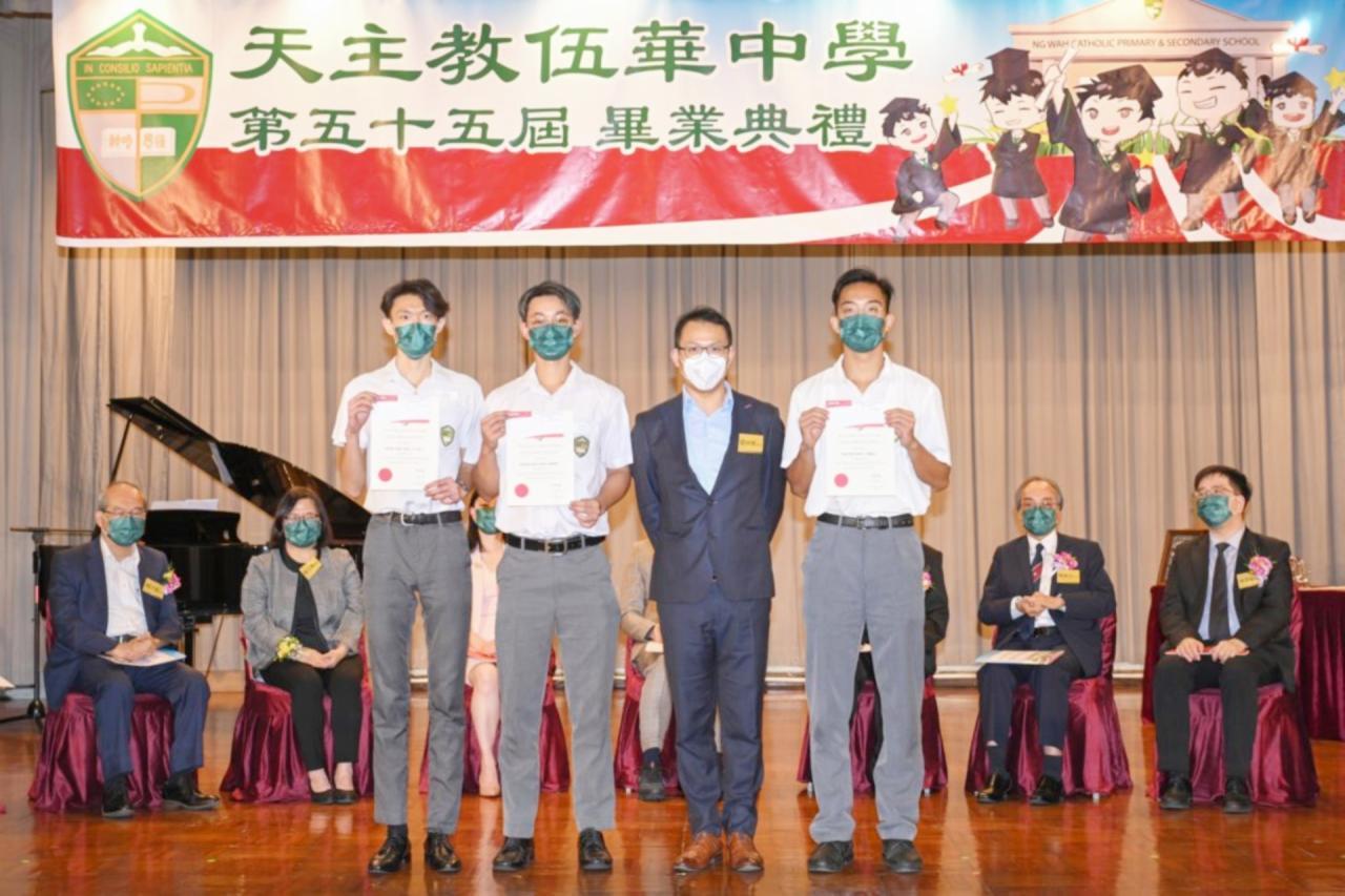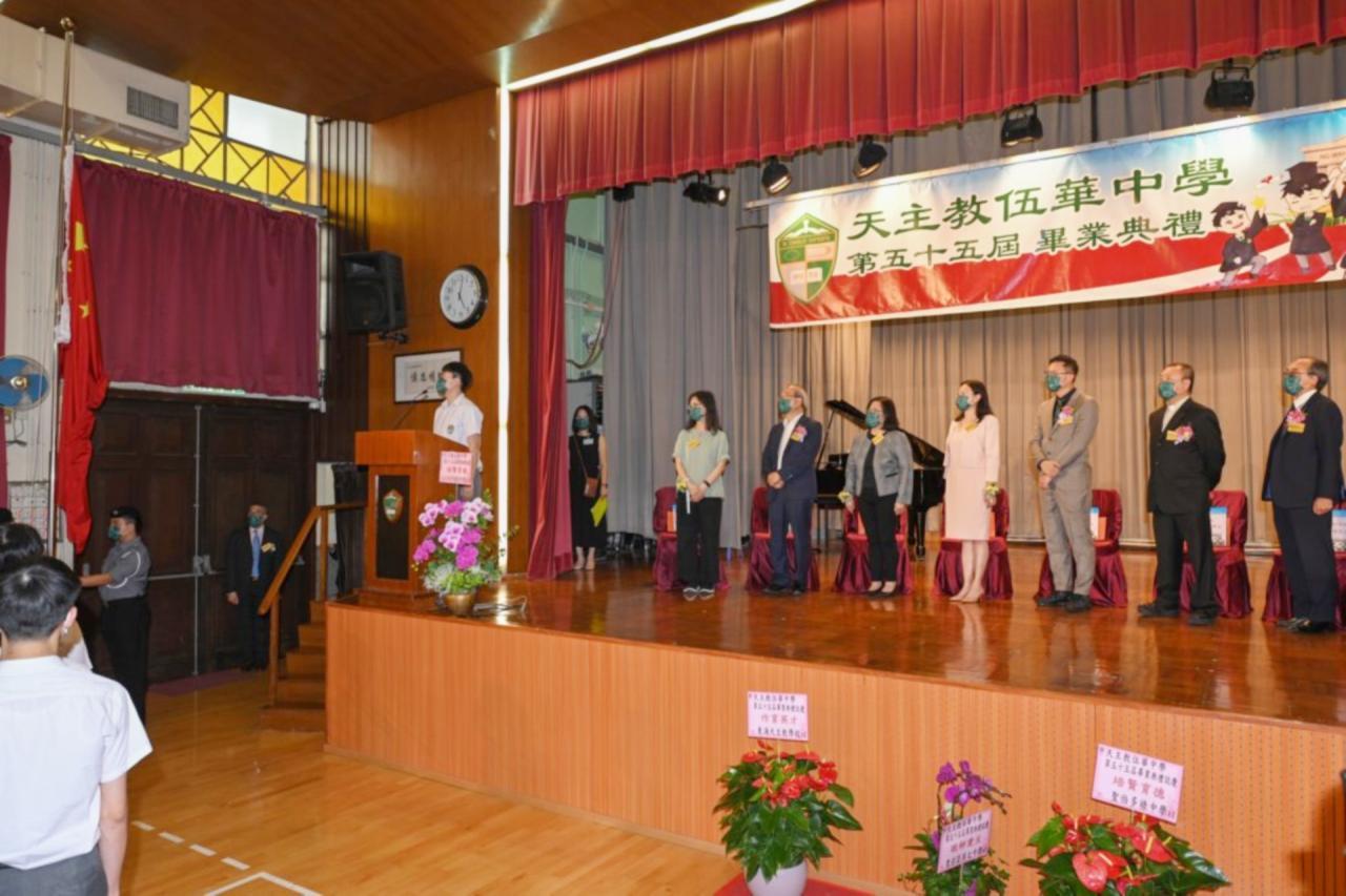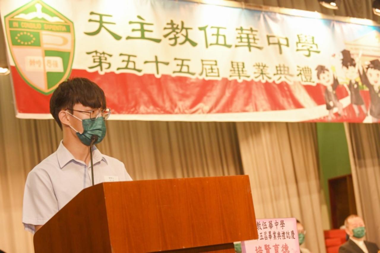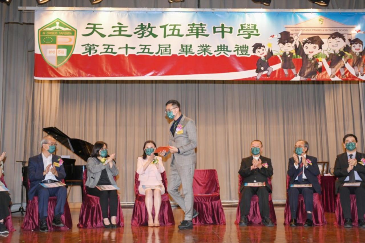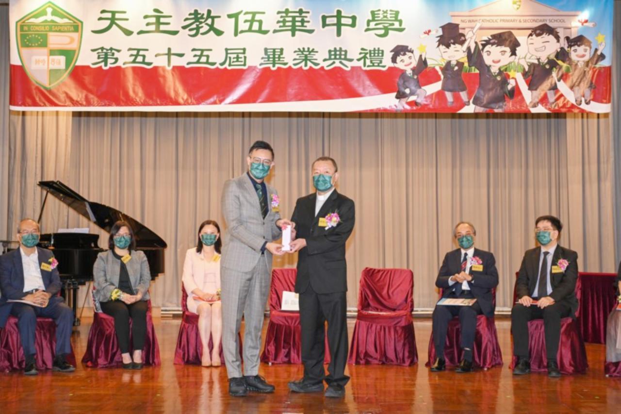 2022-06-25 第五十五屆畢業典禮於二零二二年六月二十五日隆重舉行。 典禮由校監陳德雄神父領禱開始,然後主禮嘉賓呂達文先生致訓辭,他勉勵學弟堅持追求自己夢想,保持熱情,終能邁向成功。接著呂達文先生向全體畢業生頒授畢業証書,而校監陳神父頒授教職員長期服務獎,感謝他們多年的努力付出,場內掌聲雷動,把整個畢業典禮氣氛推至高峰。 最後,畢業生代表潘慶文同學致辭,及向學校贈送紀念品,感謝師長關愛教導,感激家長和同學相知相伴,並銘記校訓慎思明辨,整個畢業典禮亦於全體師生合唱校歌下正式落幕。 活動剪影