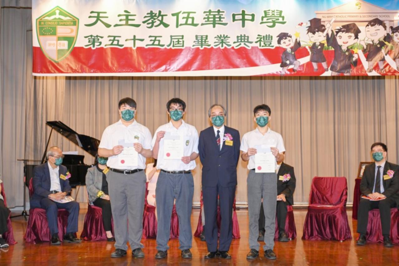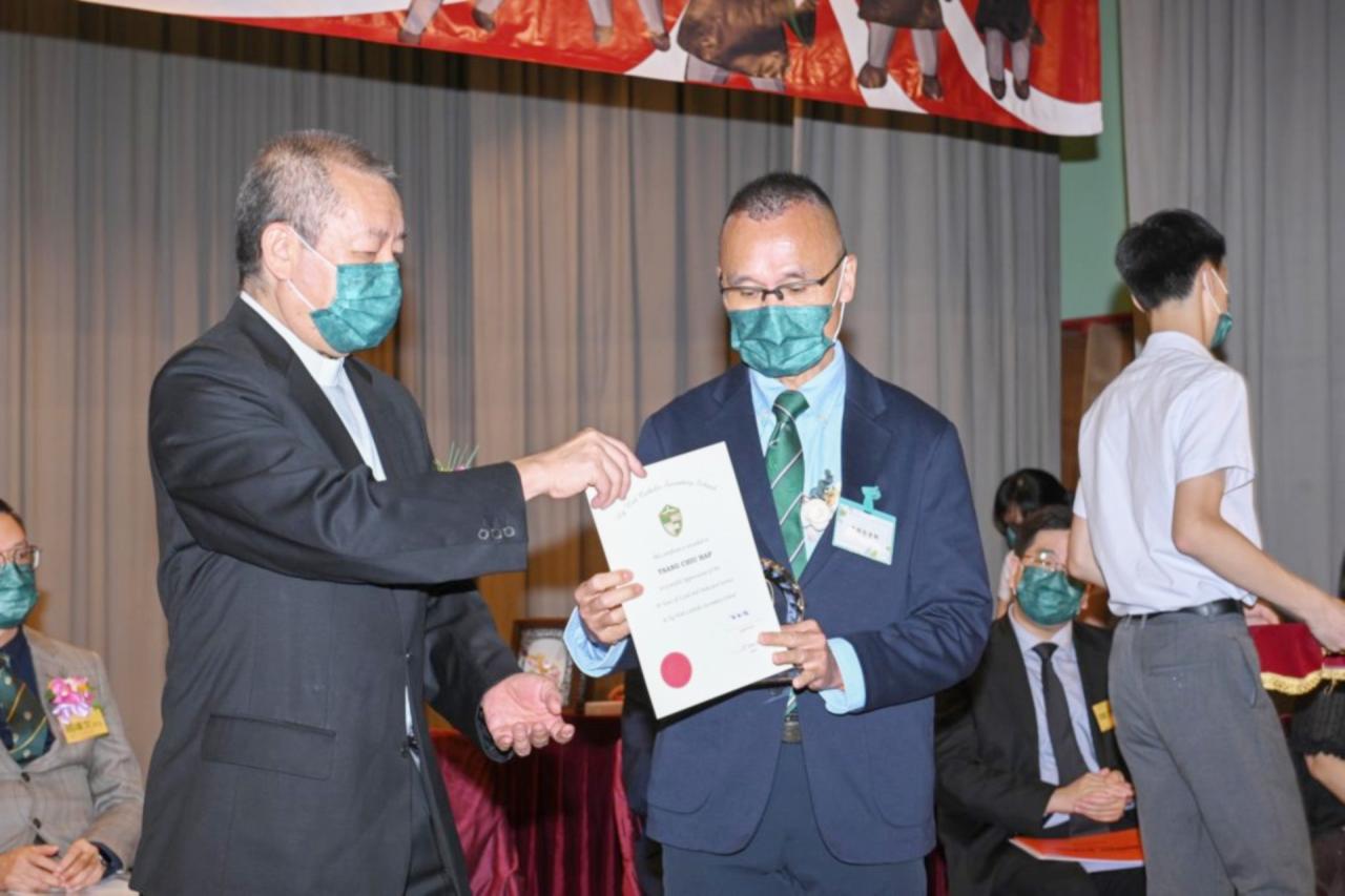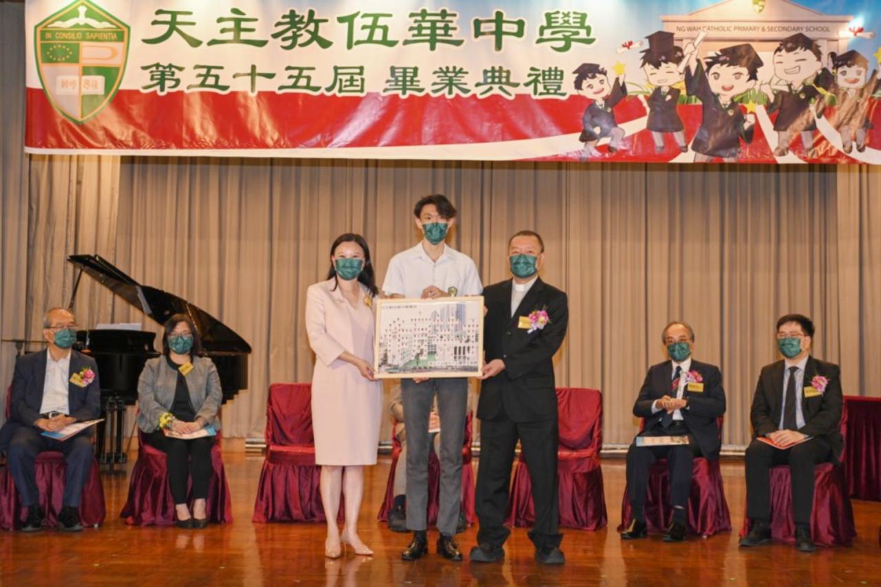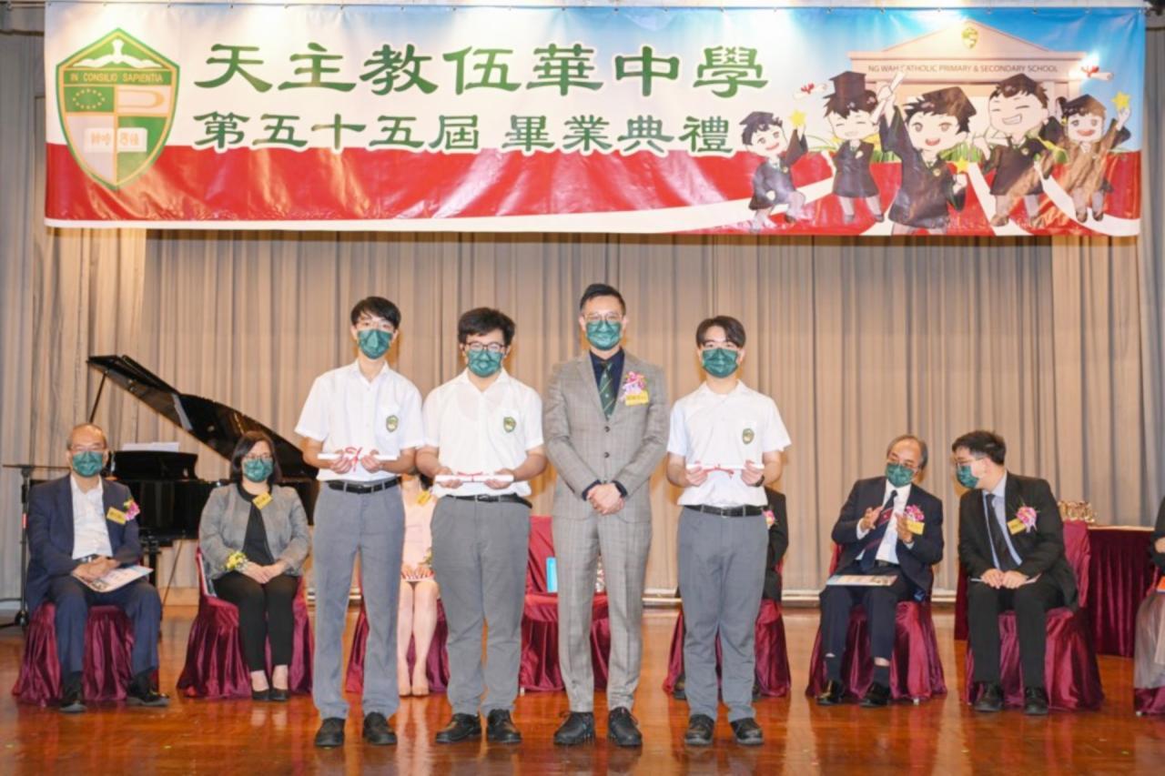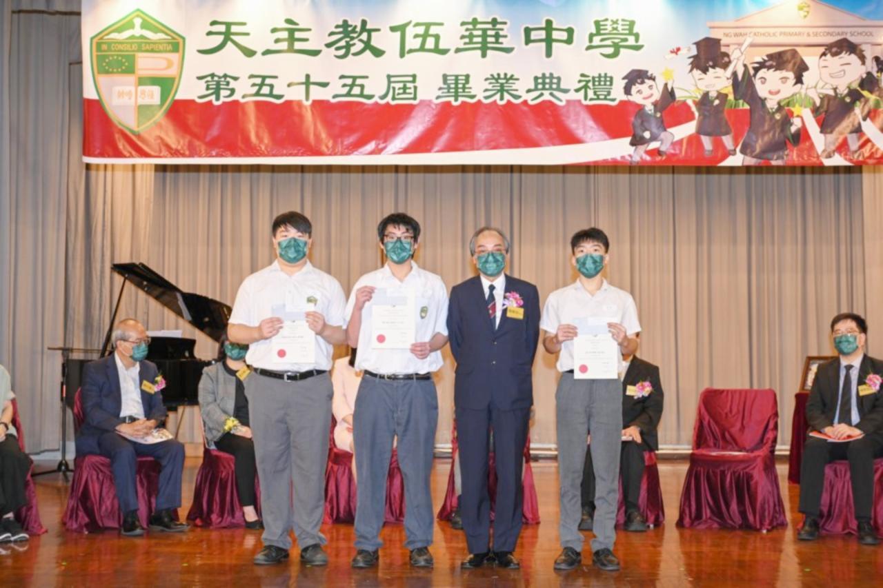 2022-06-25 第五十五屆畢業典禮於二零二二年六月二十五日隆重舉行。 典禮由校監陳德雄神父領禱開始,然後主禮嘉賓呂達文先生致訓辭,他勉勵學弟堅持追求自己夢想,保持熱情,終能邁向成功。接著呂達文先生向全體畢業生頒授畢業証書,而校監陳神父頒授教職員長期服務獎,感謝他們多年的努力付出,場內掌聲雷動,把整個畢業典禮氣氛推至高峰。 最後,畢業生代表潘慶文同學致辭,及向學校贈送紀念品,感謝師長關愛教導,感激家長和同學相知相伴,並銘記校訓慎思明辨,整個畢業典禮亦於全體師生合唱校歌下正式落幕。 活動剪影