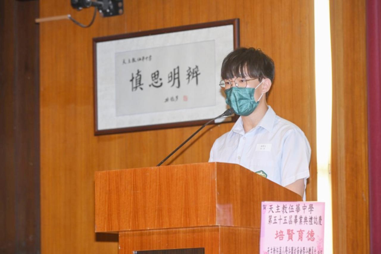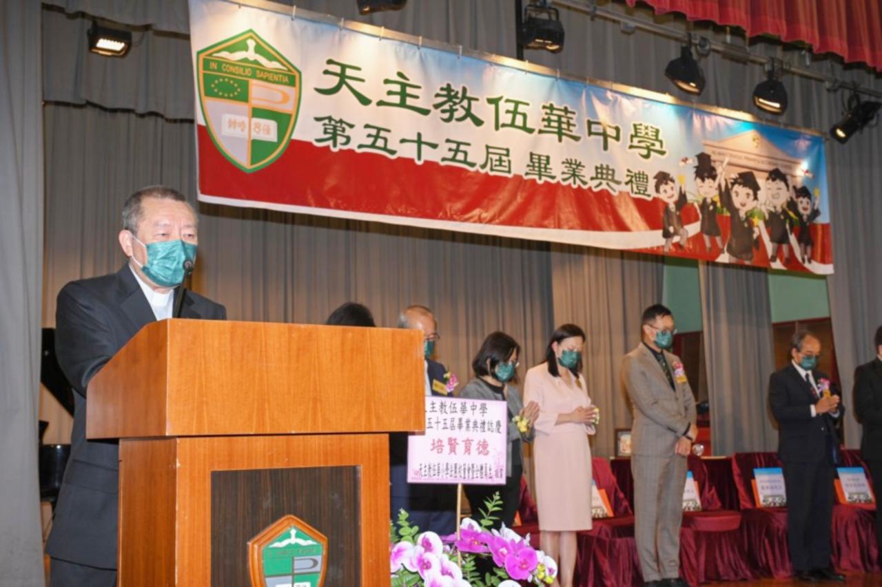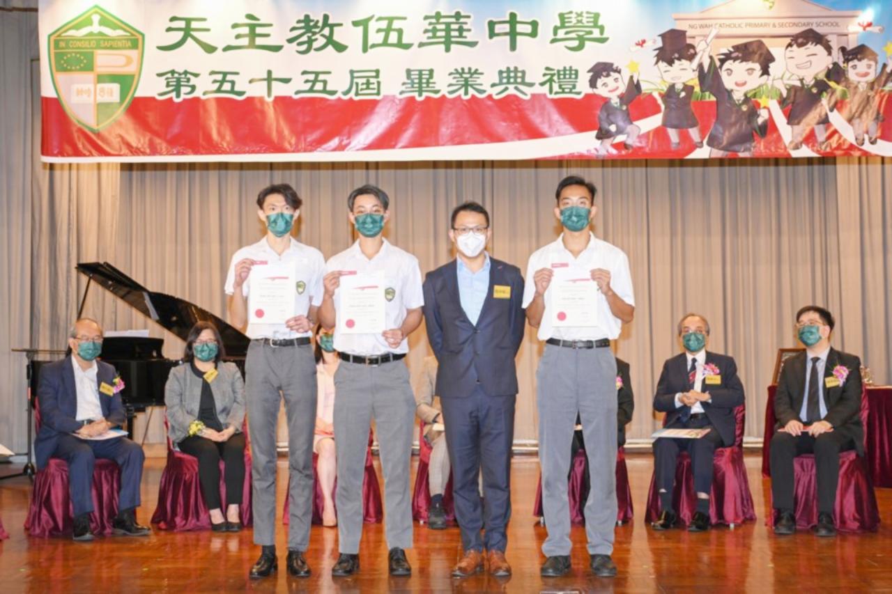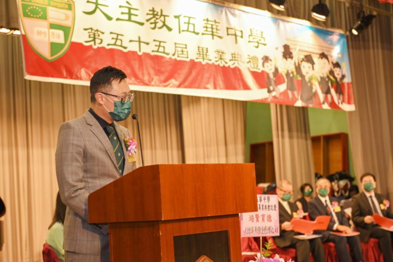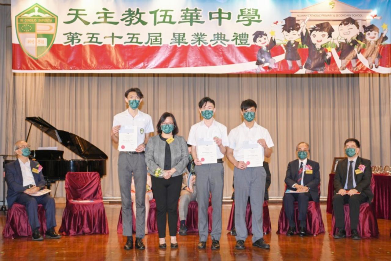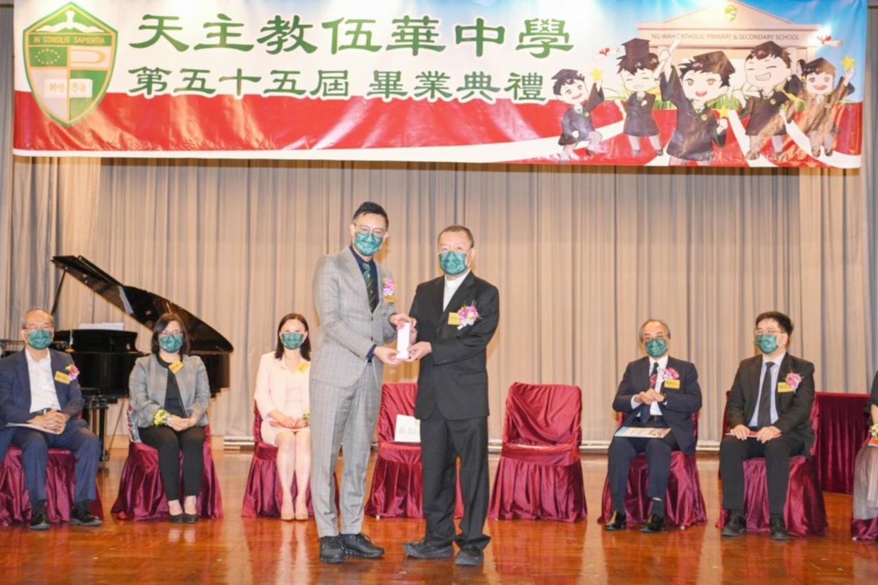 2022-06-25 第五十五屆畢業典禮於二零二二年六月二十五日隆重舉行。 典禮由校監陳德雄神父領禱開始,然後主禮嘉賓呂達文先生致訓辭,他勉勵學弟堅持追求自己夢想,保持熱情,終能邁向成功。接著呂達文先生向全體畢業生頒授畢業証書,而校監陳神父頒授教職員長期服務獎,感謝他們多年的努力付出,場內掌聲雷動,把整個畢業典禮氣氛推至高峰。 最後,畢業生代表潘慶文同學致辭,及向學校贈送紀念品,感謝師長關愛教導,感激家長和同學相知相伴,並銘記校訓慎思明辨,整個畢業典禮亦於全體師生合唱校歌下正式落幕。 活動剪影