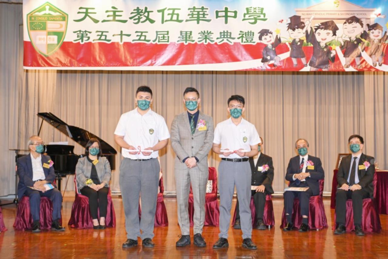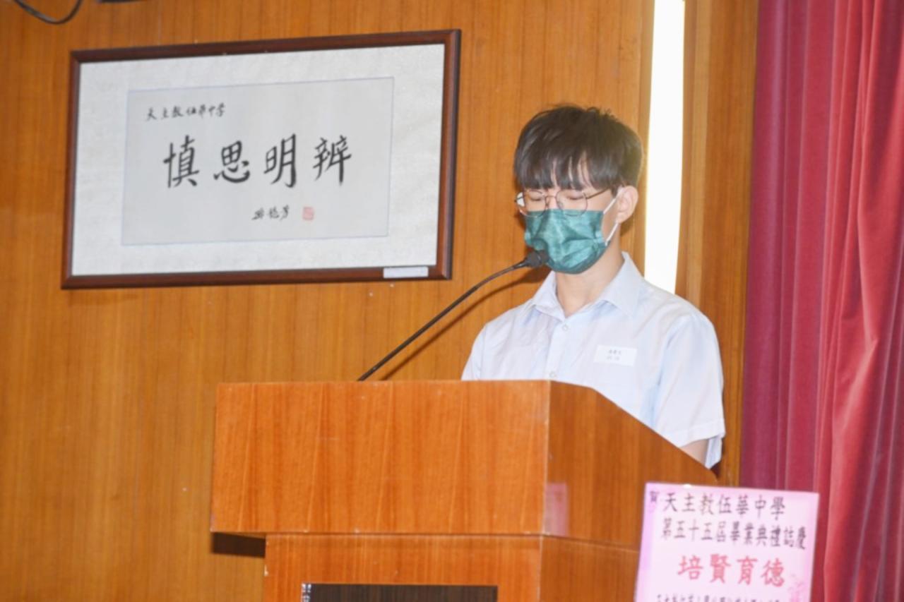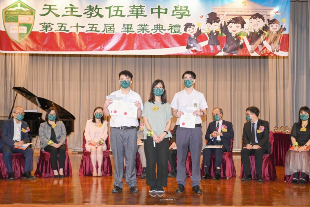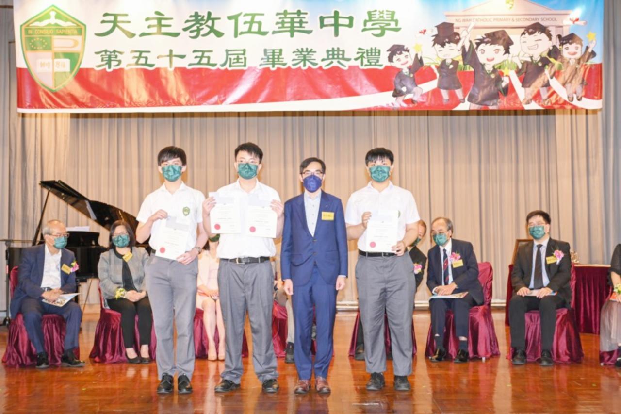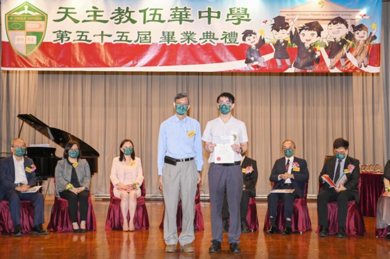 2022-06-25 第五十五屆畢業典禮於二零二二年六月二十五日隆重舉行。 典禮由校監陳德雄神父領禱開始,然後主禮嘉賓呂達文先生致訓辭,他勉勵學弟堅持追求自己夢想,保持熱情,終能邁向成功。接著呂達文先生向全體畢業生頒授畢業証書,而校監陳神父頒授教職員長期服務獎,感謝他們多年的努力付出,場內掌聲雷動,把整個畢業典禮氣氛推至高峰。 最後,畢業生代表潘慶文同學致辭,及向學校贈送紀念品,感謝師長關愛教導,感激家長和同學相知相伴,並銘記校訓慎思明辨,整個畢業典禮亦於全體師生合唱校歌下正式落幕。 活動剪影