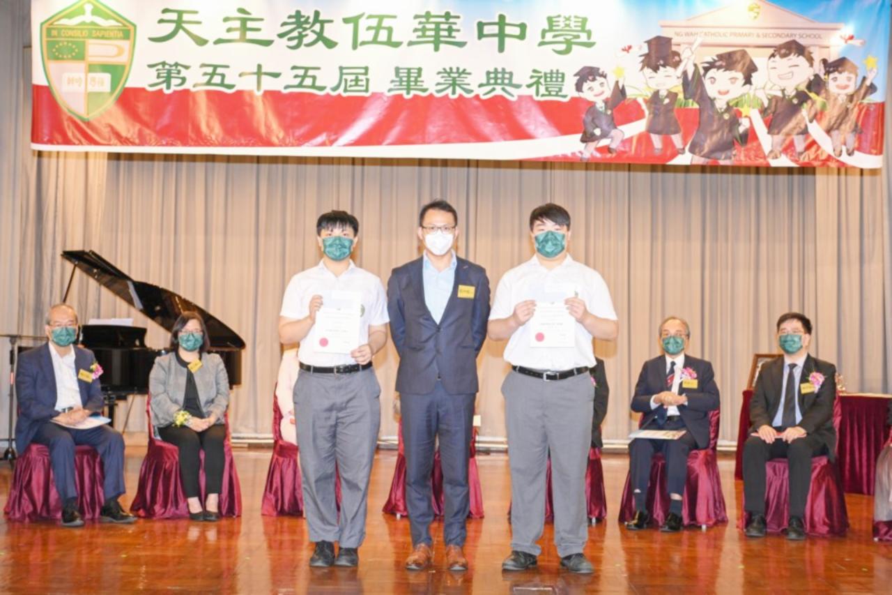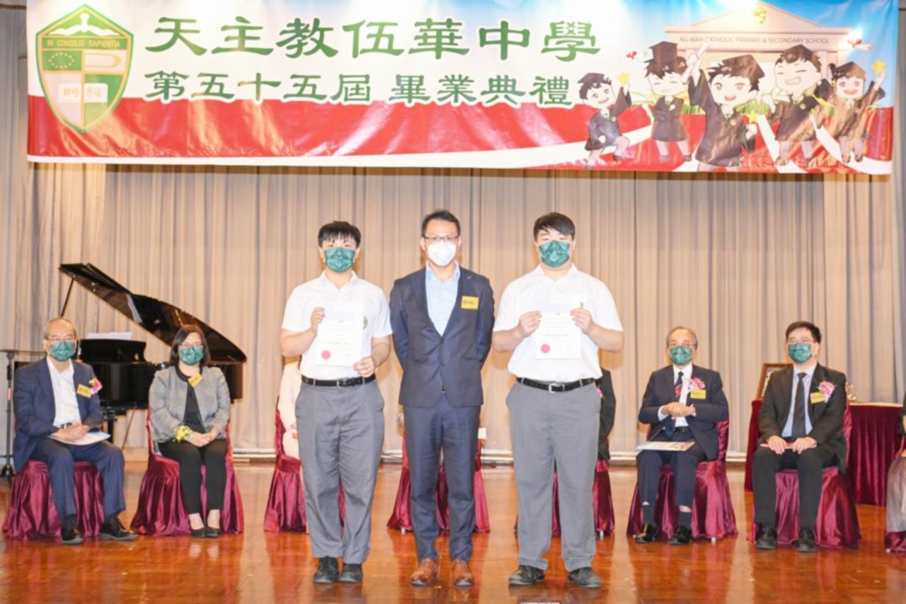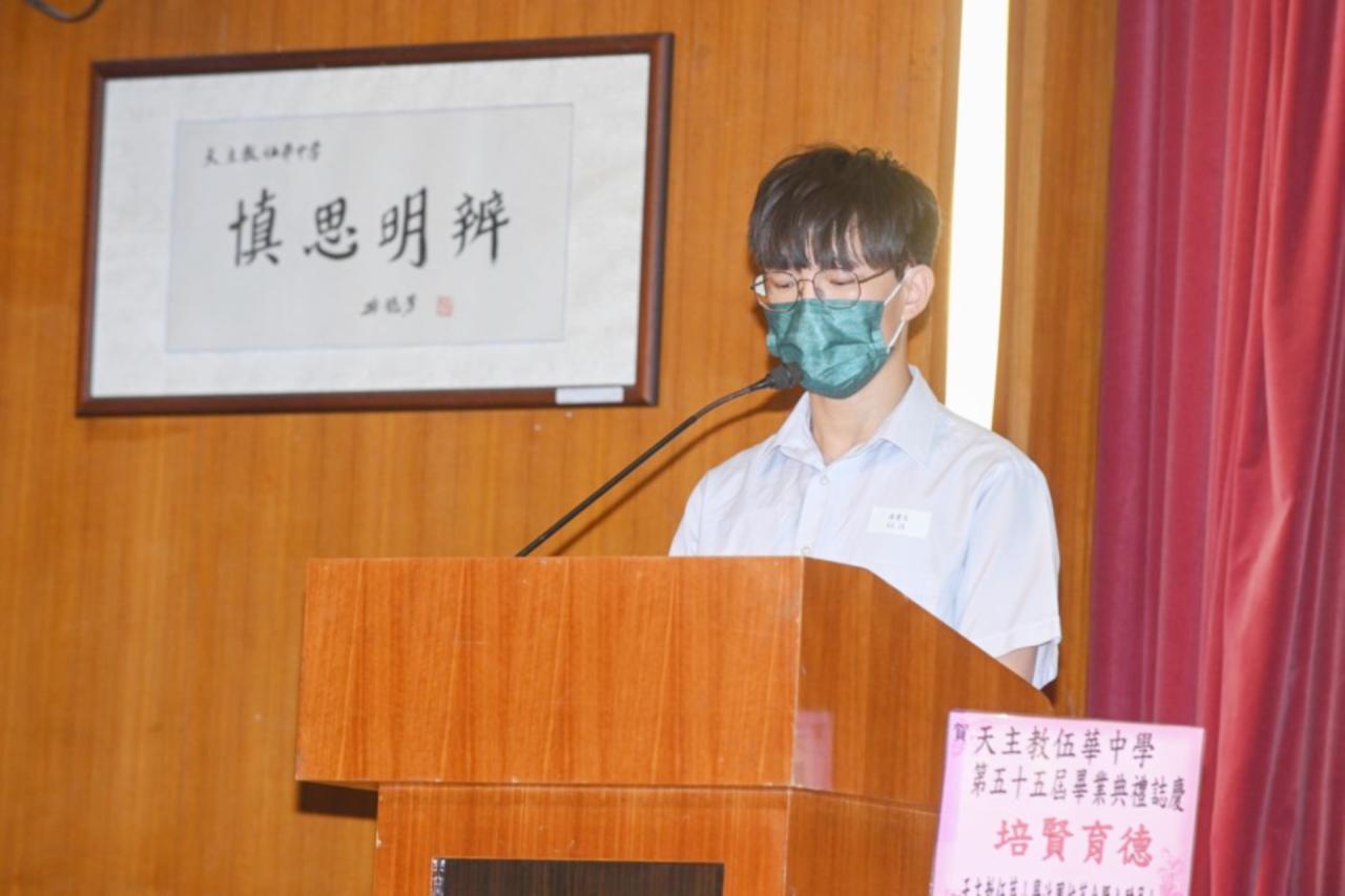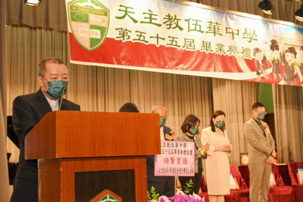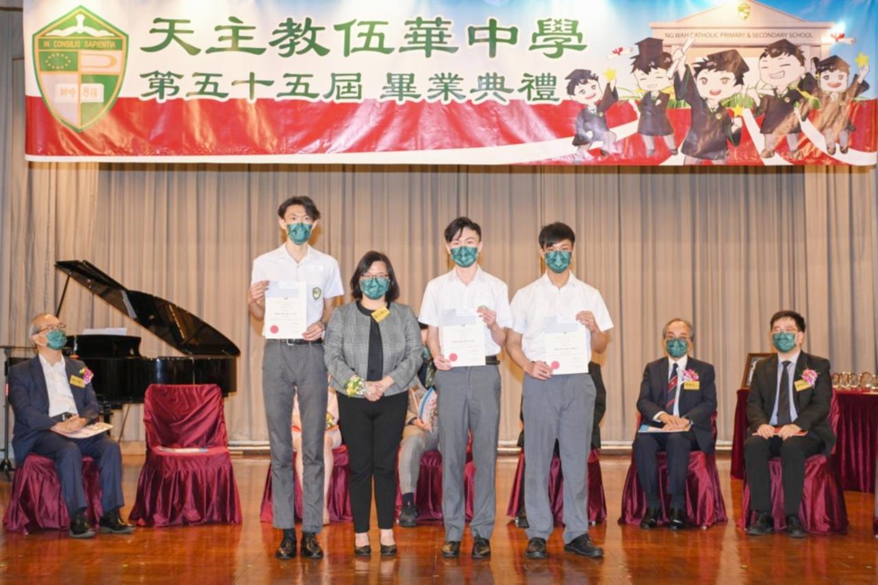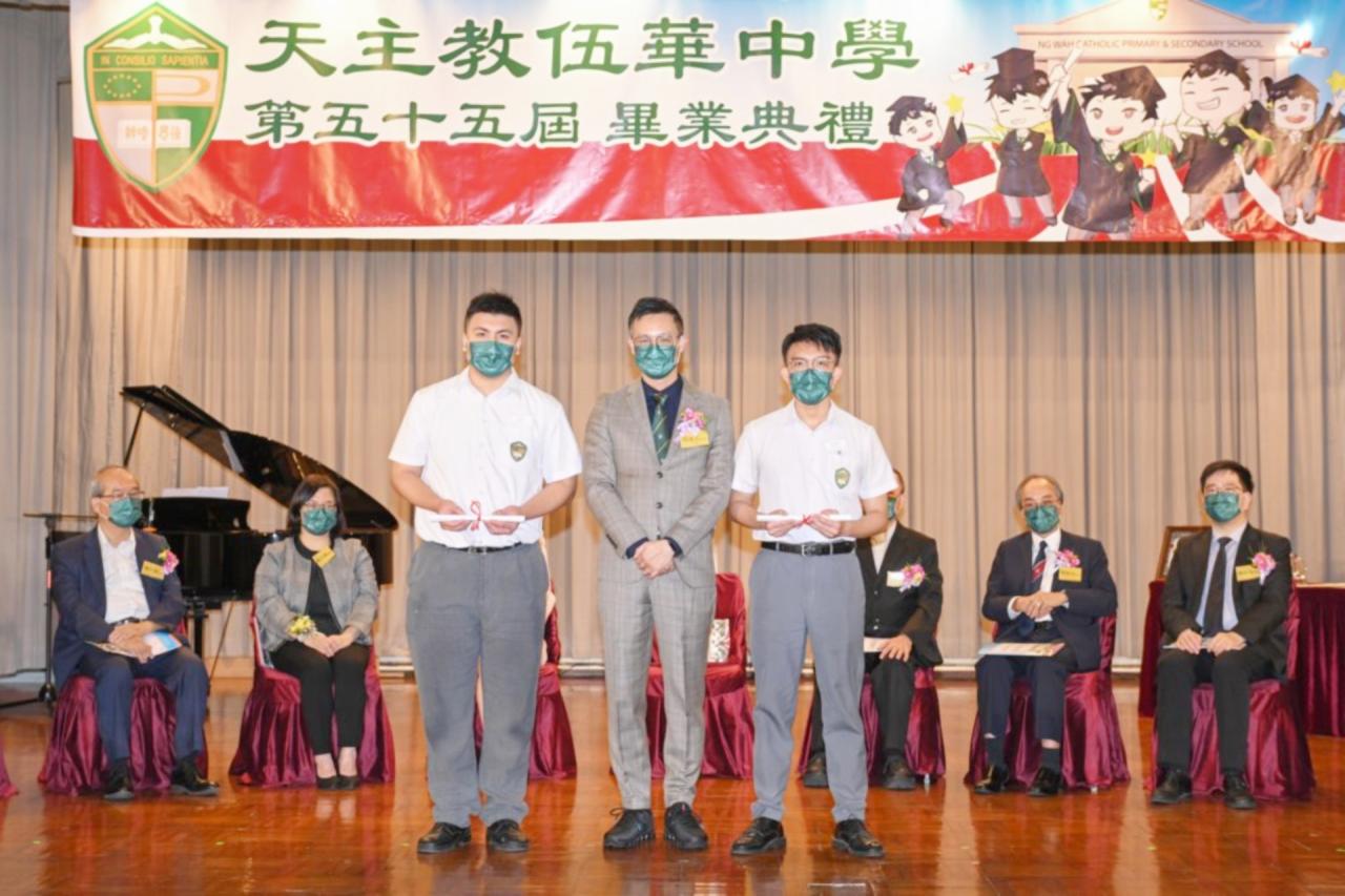 2022-06-25 第五十五屆畢業典禮於二零二二年六月二十五日隆重舉行。 典禮由校監陳德雄神父領禱開始,然後主禮嘉賓呂達文先生致訓辭,他勉勵學弟堅持追求自己夢想,保持熱情,終能邁向成功。接著呂達文先生向全體畢業生頒授畢業証書,而校監陳神父頒授教職員長期服務獎,感謝他們多年的努力付出,場內掌聲雷動,把整個畢業典禮氣氛推至高峰。 最後,畢業生代表潘慶文同學致辭,及向學校贈送紀念品,感謝師長關愛教導,感激家長和同學相知相伴,並銘記校訓慎思明辨,整個畢業典禮亦於全體師生合唱校歌下正式落幕。 活動剪影