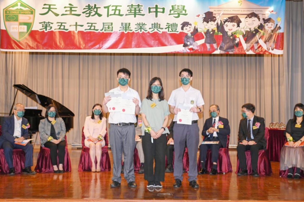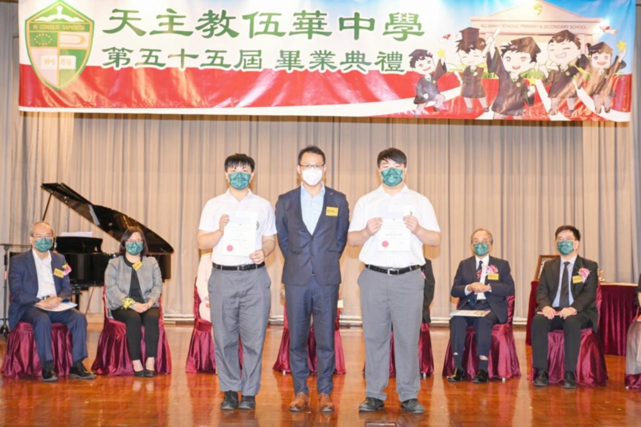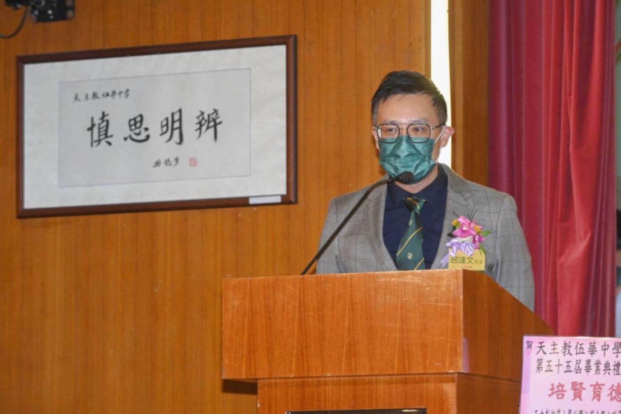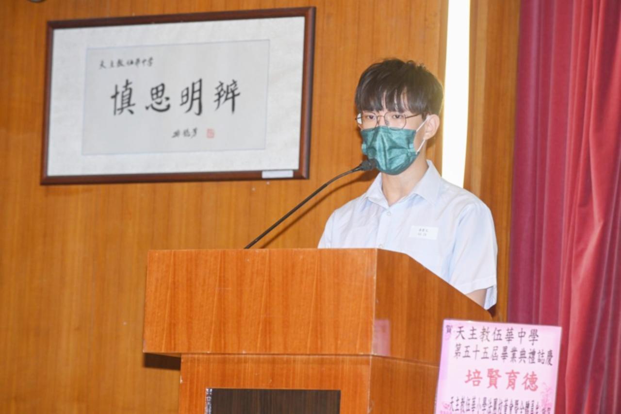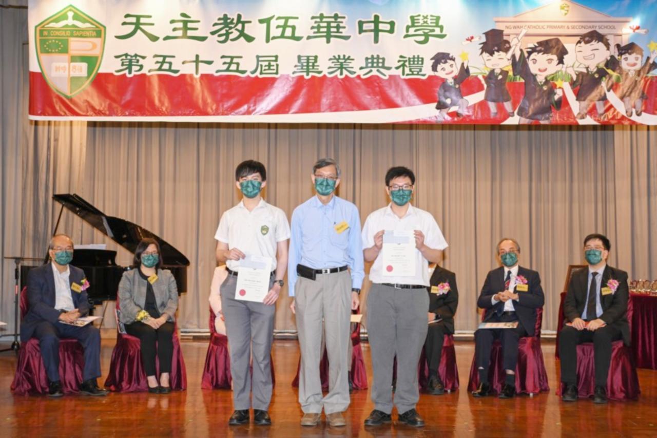 2022-06-25 第五十五屆畢業典禮於二零二二年六月二十五日隆重舉行。 典禮由校監陳德雄神父領禱開始,然後主禮嘉賓呂達文先生致訓辭,他勉勵學弟堅持追求自己夢想,保持熱情,終能邁向成功。接著呂達文先生向全體畢業生頒授畢業証書,而校監陳神父頒授教職員長期服務獎,感謝他們多年的努力付出,場內掌聲雷動,把整個畢業典禮氣氛推至高峰。 最後,畢業生代表潘慶文同學致辭,及向學校贈送紀念品,感謝師長關愛教導,感激家長和同學相知相伴,並銘記校訓慎思明辨,整個畢業典禮亦於全體師生合唱校歌下正式落幕。 活動剪影