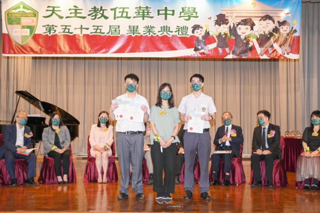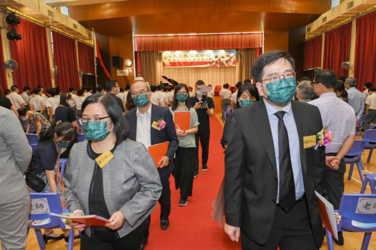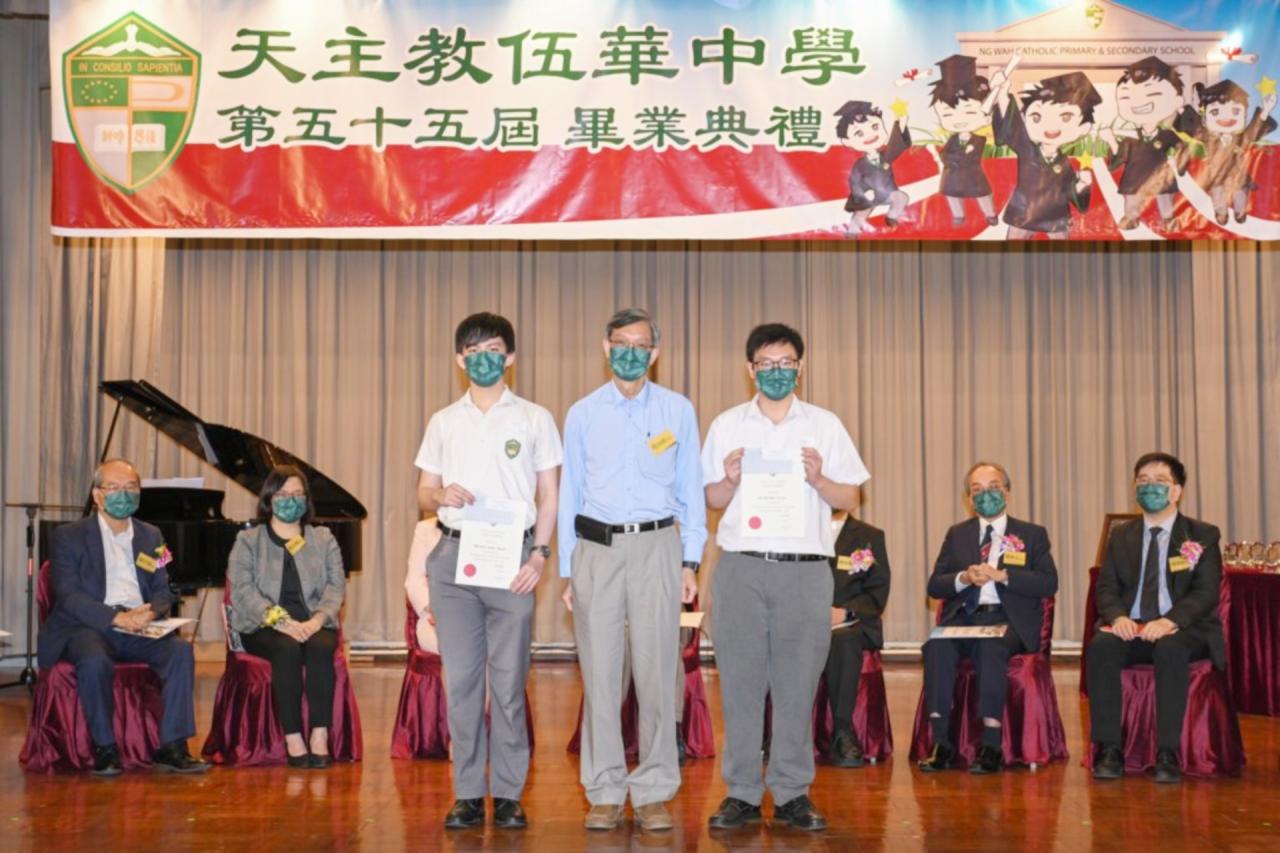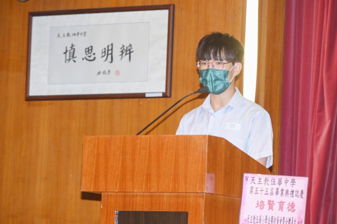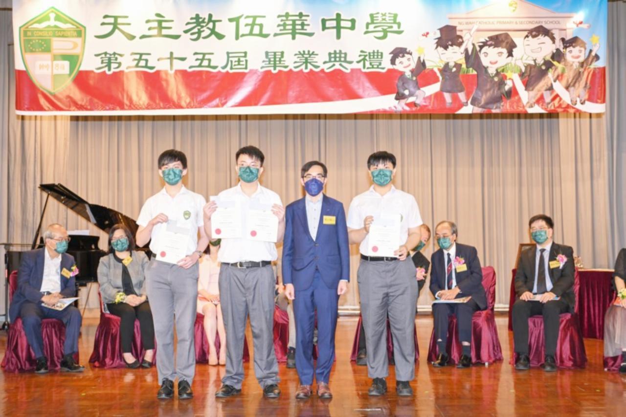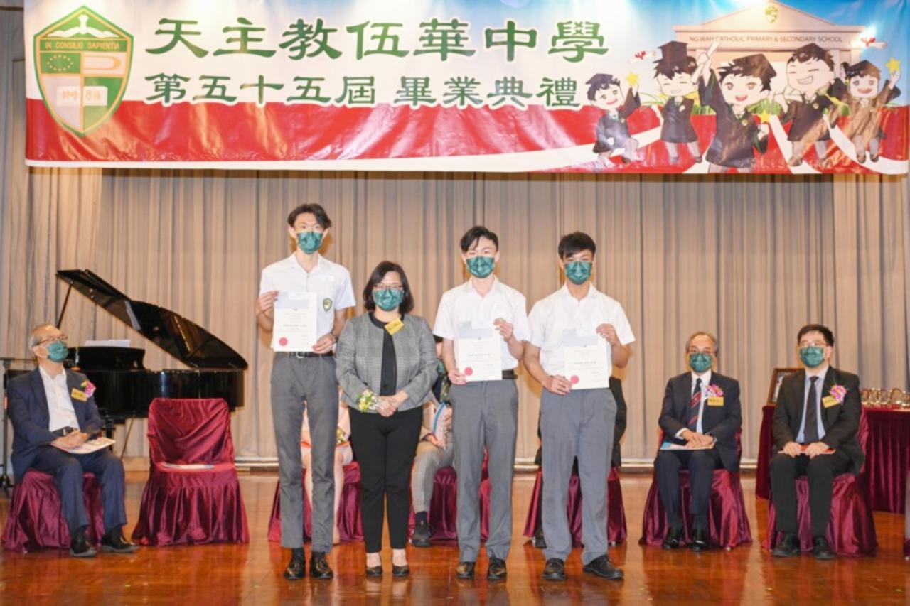 2022-06-25 第五十五屆畢業典禮於二零二二年六月二十五日隆重舉行。 典禮由校監陳德雄神父領禱開始,然後主禮嘉賓呂達文先生致訓辭,他勉勵學弟堅持追求自己夢想,保持熱情,終能邁向成功。接著呂達文先生向全體畢業生頒授畢業証書,而校監陳神父頒授教職員長期服務獎,感謝他們多年的努力付出,場內掌聲雷動,把整個畢業典禮氣氛推至高峰。 最後,畢業生代表潘慶文同學致辭,及向學校贈送紀念品,感謝師長關愛教導,感激家長和同學相知相伴,並銘記校訓慎思明辨,整個畢業典禮亦於全體師生合唱校歌下正式落幕。 活動剪影