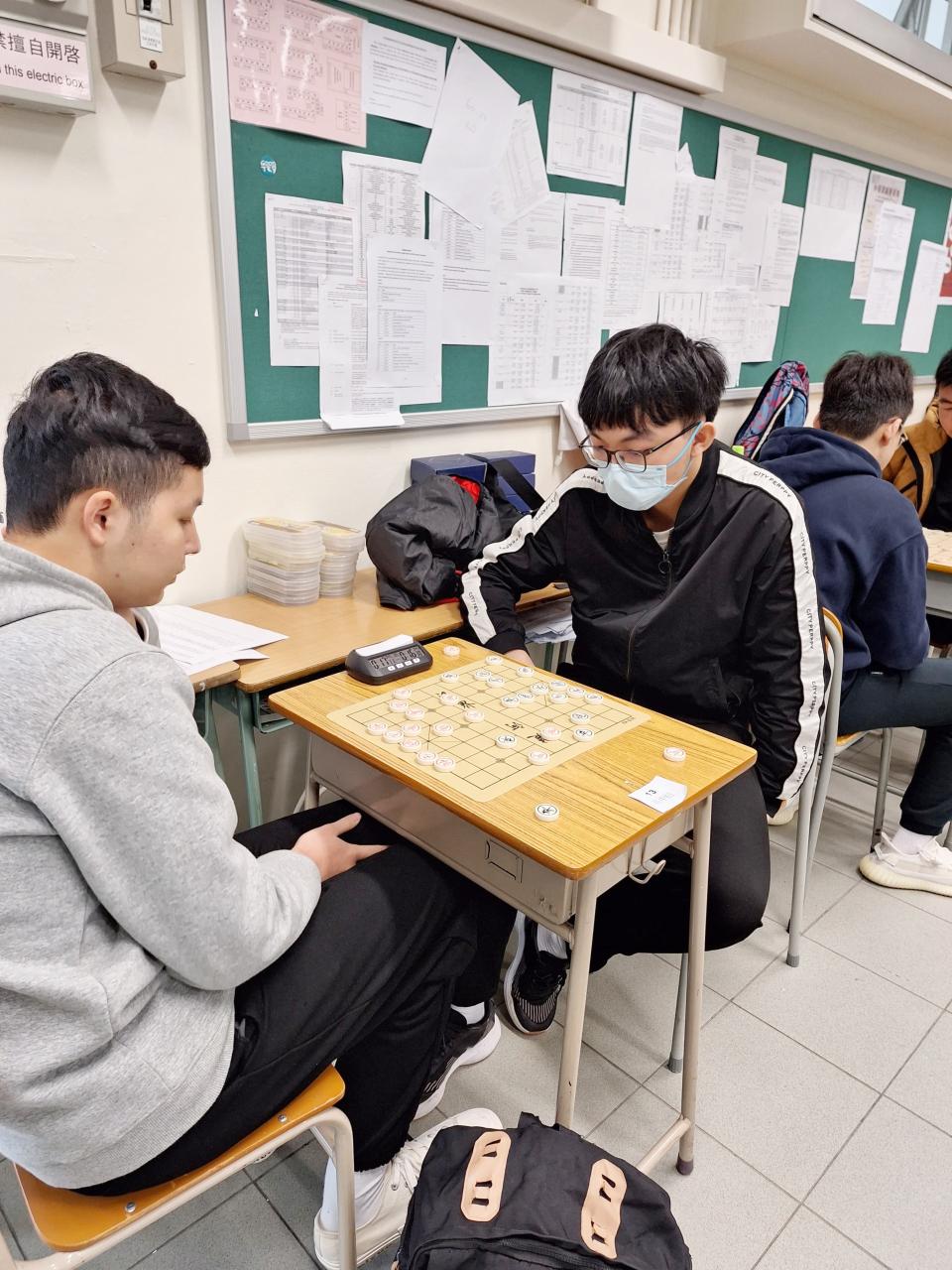 為宏揚國粹,推廣中國象棋,本校有3名中一同學及3名中五同學參與全港青年學藝比賽大會舉辦的第49屆全港青年象棋比賽。當中同學積極作賽,與其他同學切磋交流。