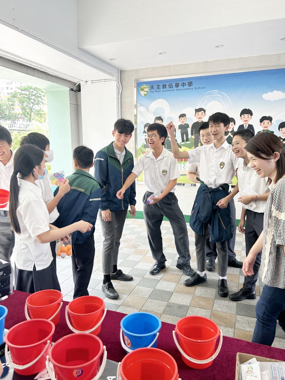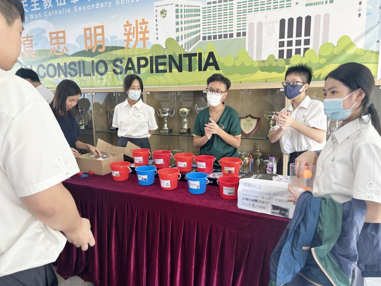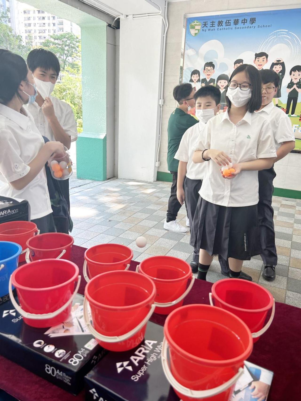 2023-09-28 為讓同學認識自己,學習情緒管理,以及舒減壓力方法。輔導組 於 9月28日午膳時間,透過攤位遊戲,讓參加同學以兵乓球擲入恰當的「減壓方法桶」,例如選取:做運動、聽音樂、小睡片刻、向人傾訴等減壓良法。期望透過遊戲,鼓勵同學以自律自愛的方式表達情緒,提升解決問題的能力。 活動期間,同學踴躍參與,氣氛熱烈,歡聲笑語不絕於耳。謹此 祝願同學們,都能以積極樂觀的態度,迎接成長路上的挑戰。 活動剪影