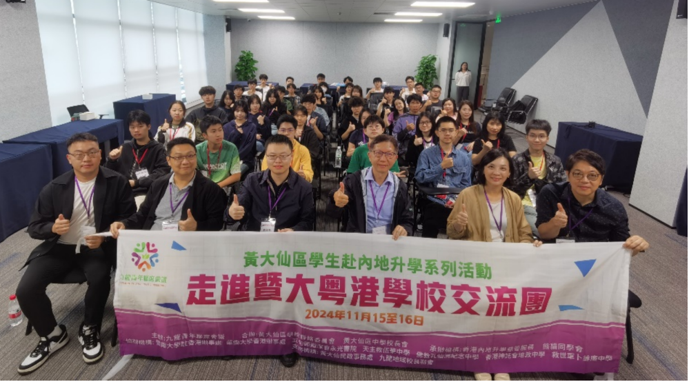 2024-11-16 本校生涯規劃老師於11月15日及16日帶領6位中五同學參加由九龍青年聯席會議主辦, 黃大仙區學校聯絡委員會及黃大仙區中學校長會合辦“走進暨大粵港校園交流團”, 前往暨南大學,深入了解內地升學政策和渠道,並前往億航智慧科技園、南沙廣汽集團等親身體驗國家科技的發展。 學生們在暨南大學校園內參觀了圖書館、實驗室和教學樓,感受了內地高校的學術氛圍和教育環境。 學生表示這次參訪讓他們對內地的大學有了更直觀的認識,亦會考慮未來到內地升學。 活動剪影