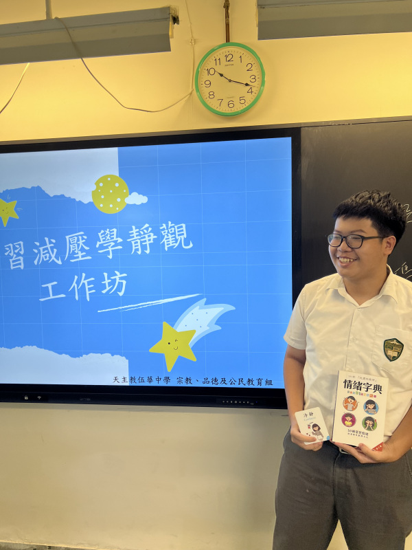 2025-09-04 為增進同學對健康生活方式的認識,並培養他們的健康生活態度,學生培育委員會於開學首星期,為全校學生安排身心靈健康活動。由班主任帶領,利用情緒卡及情緒字典,與同學探索情緒;以及學習靜觀練習,以處理壓力,學習關心自己、善待自己;此外,同學亦練習了伸展運動和護眼操,認識保護眼睛健康的方法,及久坐對身體的負面影響。活動過後,同學們都同意活動能有效提升對身心健康的關注。 活動剪影