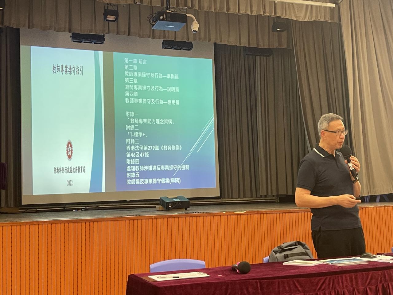2023-11-02 我們於11月2 日在本校禮堂舉行了本年度第二次教師發展日 ,藉著分組討論 ,讓老師二起參與持續優化學校的考績評核制度 ,不斷提升教學成效及工作效率 。 下午邀請了林日豐校長為我們主持講座 ,講解有關教師專業操守內容,令伍華中學的教師團隊能與時並進,積極向上,為學生提供優質的教育。 教師專業發展