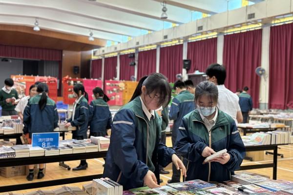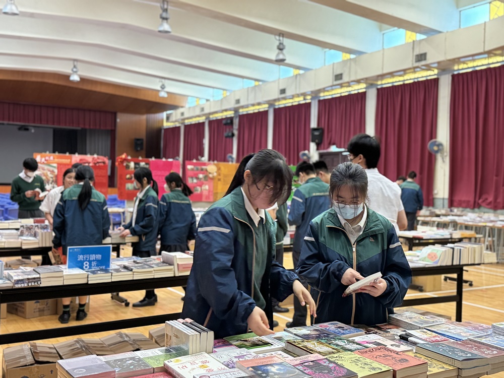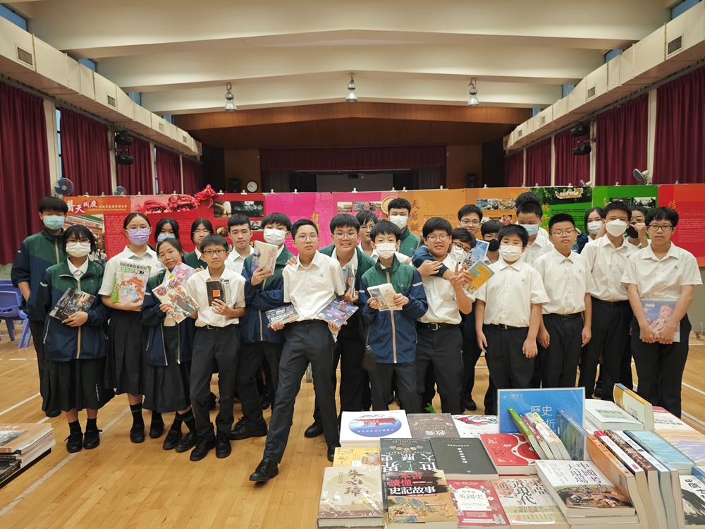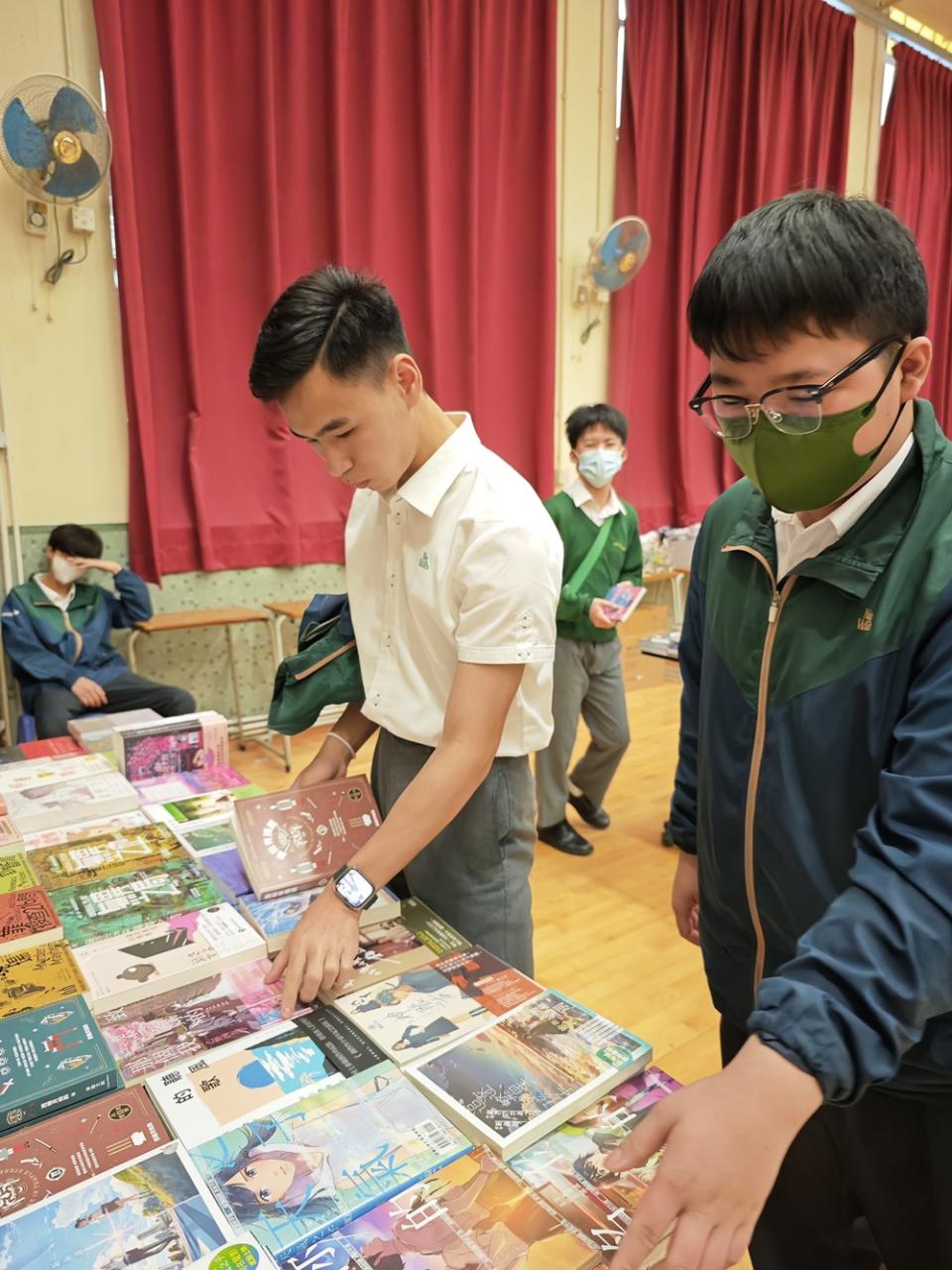 2024-04-22 爲響應首屆「香港全民閱讀日」,學校推廣閲讀組與各部門合作,於4月22日至4月24日合辦了「人文書展」。是次書展,除了設置人文讀物、流行讀物、心理勵志等區域外,還佈置了中國傳統節慶展板。學生在參觀書展之餘,增加了中國傳統文化的認識。