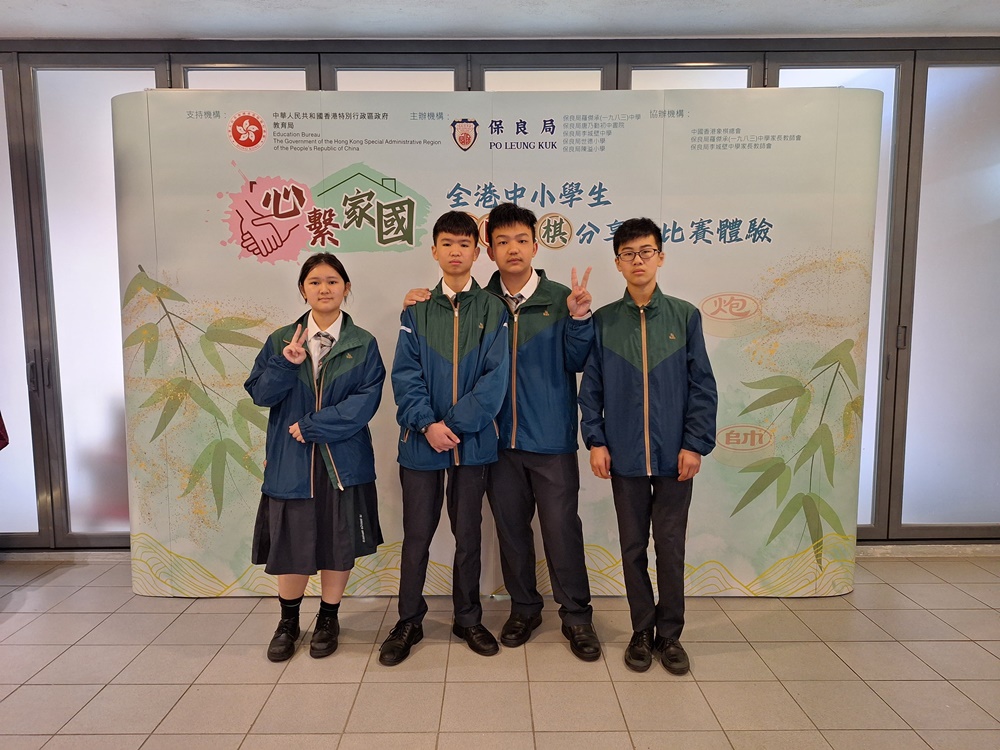 2025-05-07 本校有4名中二同學參與保良局「心繫家國」全港中小學生中國象棋分享及比賽體驗活動。 同學們一方面了解中國象棋與中華文化之間的關係,及對其歷史發展加深認識, 另一方面他們學習新穎的中國象棋雙人賽制,進行了實踐體驗, 並聆聽杭州亞運會中國象棋代表黃學謙的個人分享