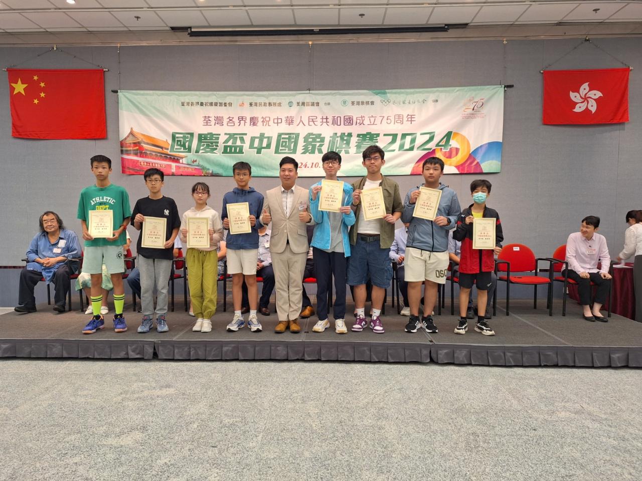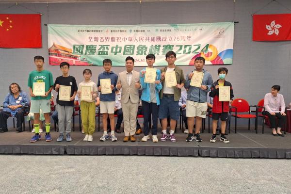 2025-05-07 為慶祝中華人民共和國成立75周年、弘揚國粹及推廣象棋文化,荃灣象棋會舉辧了國慶盃中國象棋賽2024, 本校有1名老師及2名同學分別參與公開組及青年組賽事。當日戰況激烈,同學們積極努力,最終獲得優異成績。賽事結果如下: 青年組第6名(優異奬):2C劉浩庭 青年組第11名(優異奬):2B游禮丁