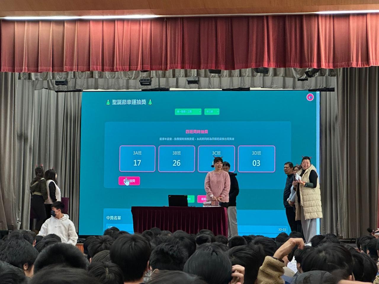 2024-12-19 聖誕聯歡抽獎及家長聖誕聯歡會 家長教師會都積極參與學校舉辦的聖誕聯歡活動。除了捐贈豐富多樣的抽獎禮品資助「聖誕大抽獎」之外,還為全校師生精心準備了溫馨小禮物,讓節日氛圍彌漫教室與走廊。家教會委員們不僅慷慨出資,還親自動手佈置現場:掛起彩燈、繫上彩帶,打造繽紛舞台;安排家長義工擔任抽獎嘉賓,為同學帶來驚喜。