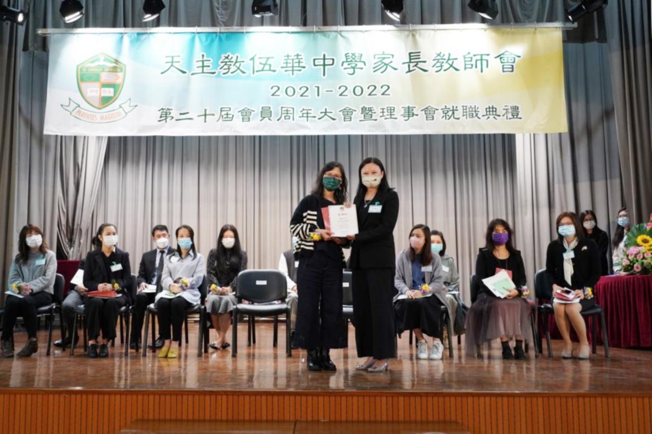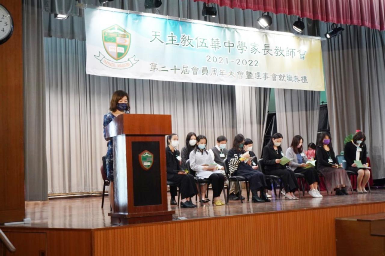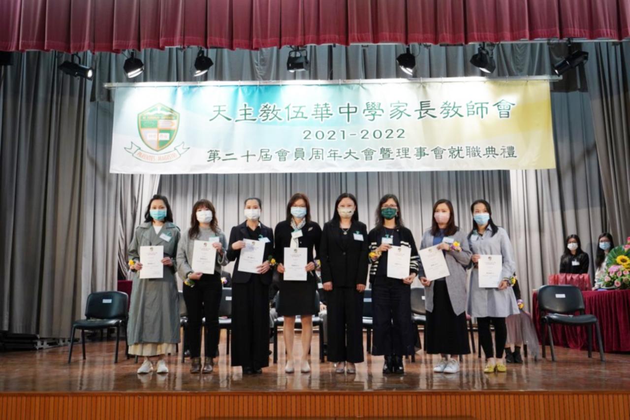 天主教伍華中學家長教師會於2021年12月11日舉行第20屆會員周年大會暨就職典禮。在大會當天,新任理事委員舉行就職儀式,同場教育心理學家許潔心女士講解提升學生責任感的要訣。