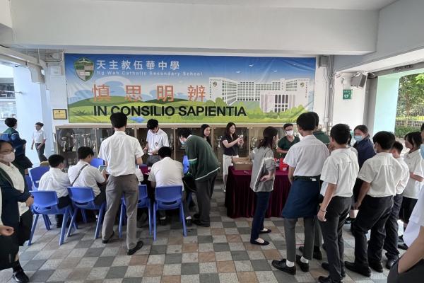 2023-09-28 生涯規劃組於德育周(9月28日)午間舉辦自我認識活動,透過自我認識遊樂場遊戲,遊戲以「實際型」、「研究型」、「藝術型」、「社會型」、「企業型」和「事務型」六大職業性格為依歸,讓學生認識自己,發掘自己的職業導向。期間20多位學生老師一同參與,就自己所屬的類型互相交流,打成一片,氣氛融洽。