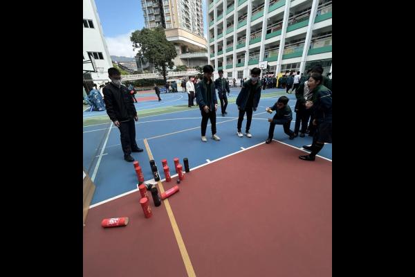 2025-03-08 木射始於唐代的球類遊戲,每位參加同學可領兩球, 手持球從地面滾撃木柱,撃中赤書木柱加分,撃中墨書木柱減分, 透過遊戲讓同學體驗古人的活動,及認識「仁、義、禮、智、信、溫、良、恭、儉、讓」 十種中國傳統的美德,同學反應熱烈,踴躍參與。