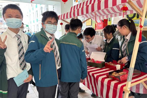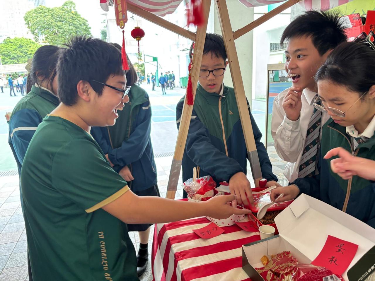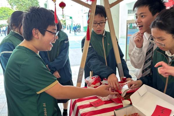 為了讓同學認識傳統賀年食品,中文周特設賀年食品攤位, 讓同學品嚐賀年食品,從中了解中國春節的習俗, 同學反應熱烈,踴躍參與活動。