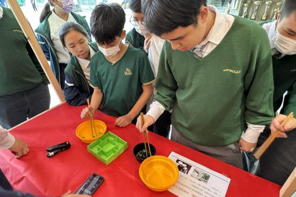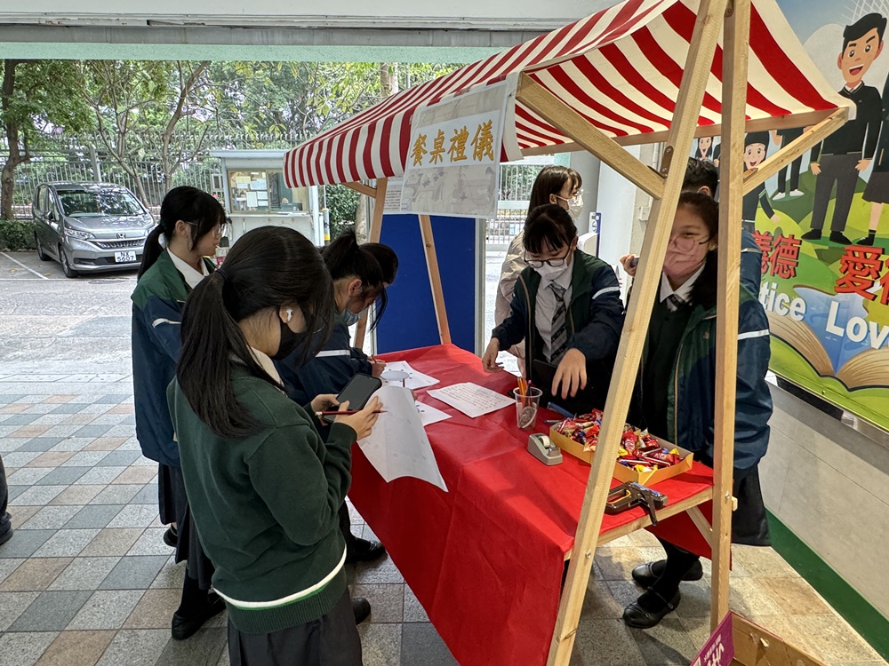 中文科於2月28日午膳時段為同學們舉辦了「認識中國飲食禮儀與器具」的活動,透過展板與攤位遊戲向同學們講解日常用餐時應注意的各種規矩,及其背後蘊含的文化意義。