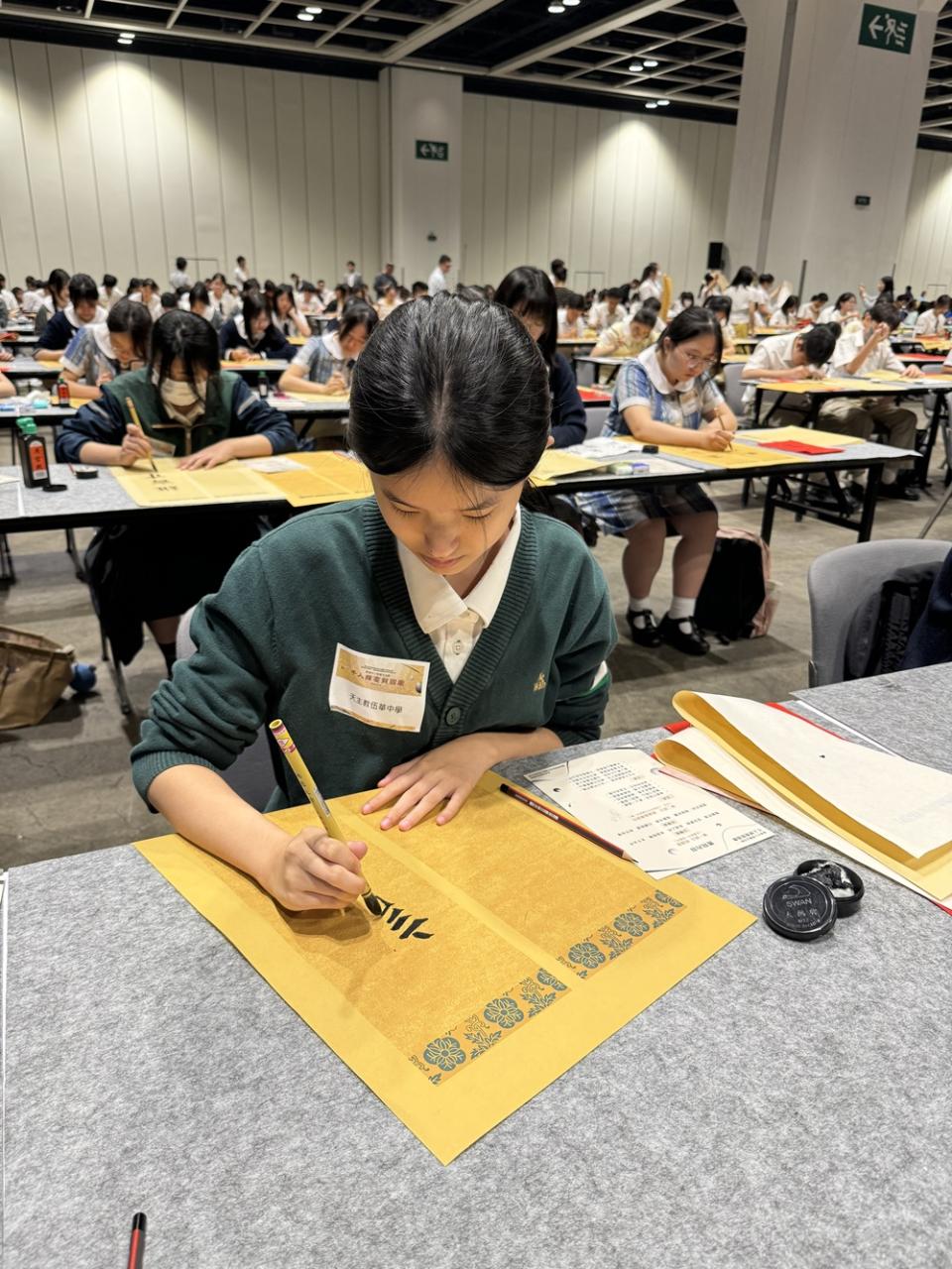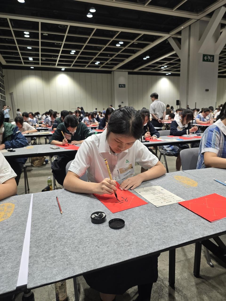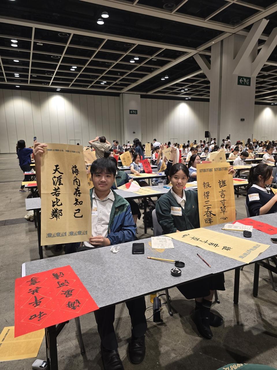 本校於2024年9月14日參加由教育局舉辦的「千人揮毫賀國慶」活動,慶祝中華人民共和國成立75周年。是次活動分別有2C班何麗雯,2D班林紫微,以及3B班歐陽天慈、李熙兒、李芷殷及梁梓洋同學參與。 活動逾1800名來自142所中小學的學生齊聚一堂,與300位校長、教師及嘉賓一同揮毫。署理教育局局長施俊輝先生在致辭中強調書法藝術作為中華文化瑰寶的重要性。本校學生書寫「國泰民安」、「和平共享」等祝福字詞,以及詩句,不僅展現了對書法藝術的熱愛,更表達了對祖國的祝福。 是次活動不僅讓學生們親身體驗中華文化的魅力,也培養了他們的文化素養和愛國情懷。本校將繼續支持類似活動,助力學生全面發展。