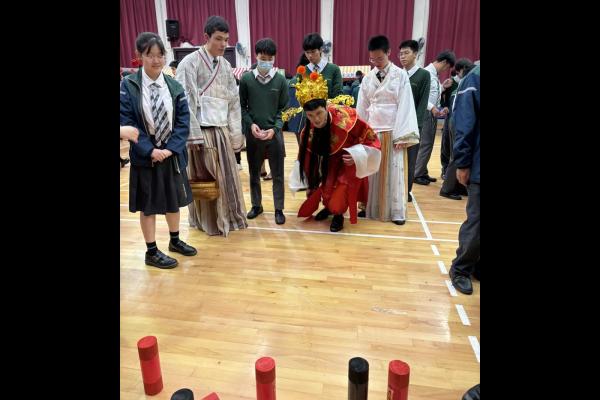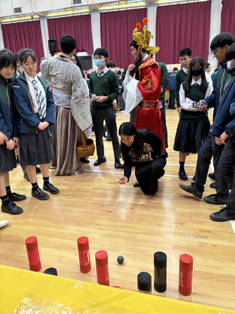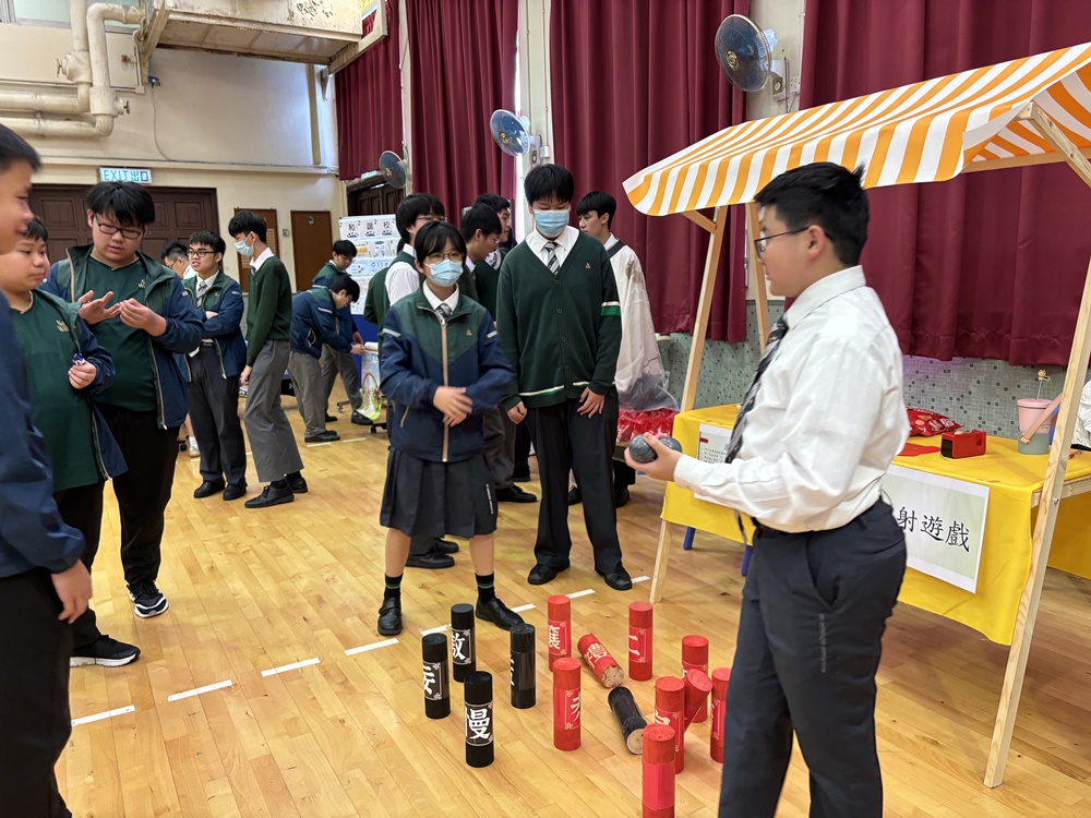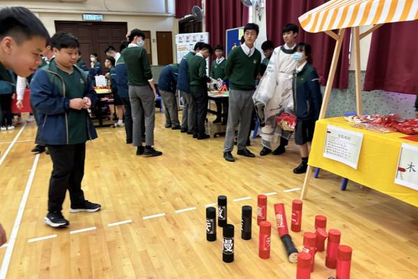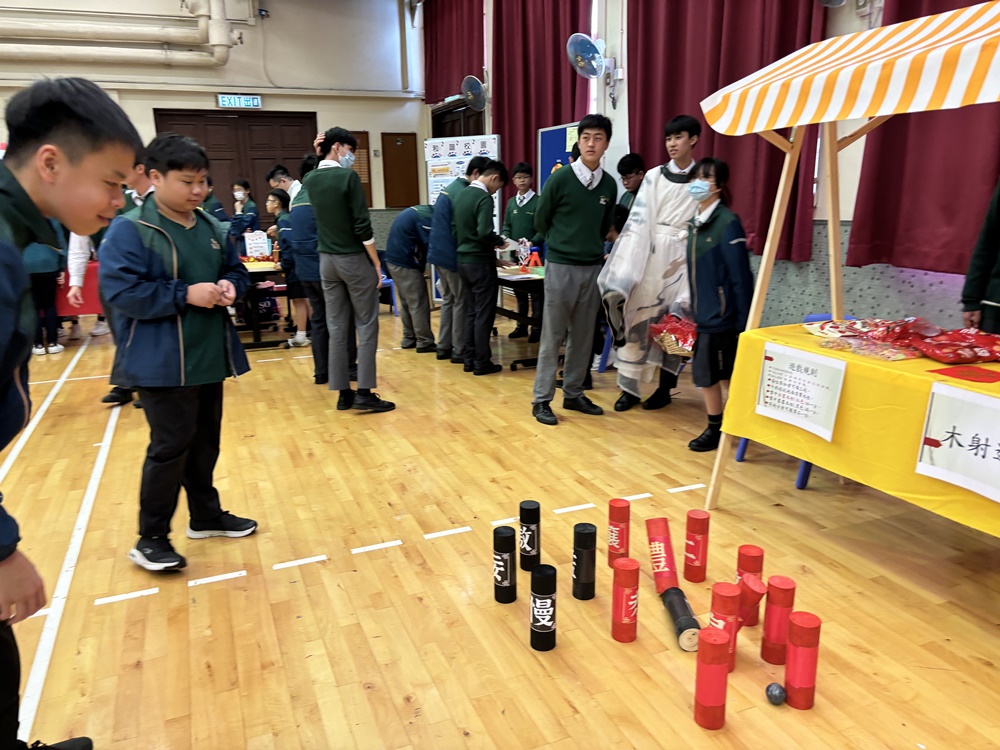 2024-02-02 中文科於2月2日「師生同樂迎新歲」中舉辦木射傳統遊戲。透過木射遊戲讓同學體驗古人的活動,及認識「仁、義、禮、智、信、溫、良、恭、儉、讓」十種中國傳統的美德,當日同學反應熱烈,踴躍參與。