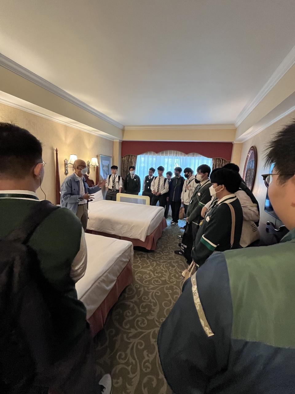 2024-02-06 生涯規劃組於2月6日舉辦迪士尼款待體驗工作坊,帶領20位中四及中五學生到香港迪士尼主題樂園酒店。透過活動讓同學加深對本地旅遊與管理模式及文化的理解。在活動中,同學先到樂園酒店前台,了解前台的接待工作,然後深入酒店內部,觀察並學習客房部門的運作流程。同學亦考察了樂園的配套設施和度假區的公共運輸服務,學習如何提供優質的服務,為遊客留下舒適的旅行體驗。 當天學生在迪士尼指導員詳細講解下,了解到迪士尼樂園酒店不同崗位員工的工作特質及工作點滴,認識到成為迪士尼酒店員工的入職要求及所需技能。