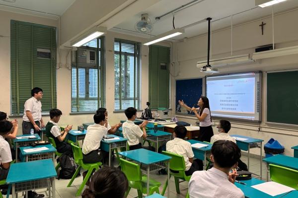 2023-09-07 為豐富校園閱讀活動,創設良好的閱讀風氣,培養學生多元的興趣愛好,推廣閲讀組於9月初組織了中二至中五級共二十名學生參加了「校園小主播」閱讀實踐課程。是次活動由口語表達教師、電台唱片騎師、主持人錢佩佩進行專業實景式主播教學培訓,學生在培訓過程中掌握了正確的咬字方法,提高了口語表達能力,最後學生們挑選了閲讀篇章錄製有聲書。活動中,學生們提高了他們的文學欣賞和口語表達能力。