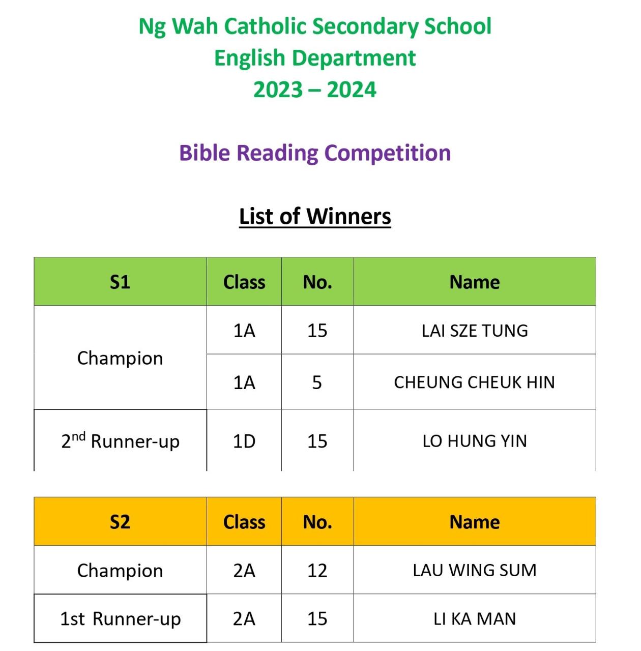 Champions of the “Bible Reading Competition” 2023 to 2024