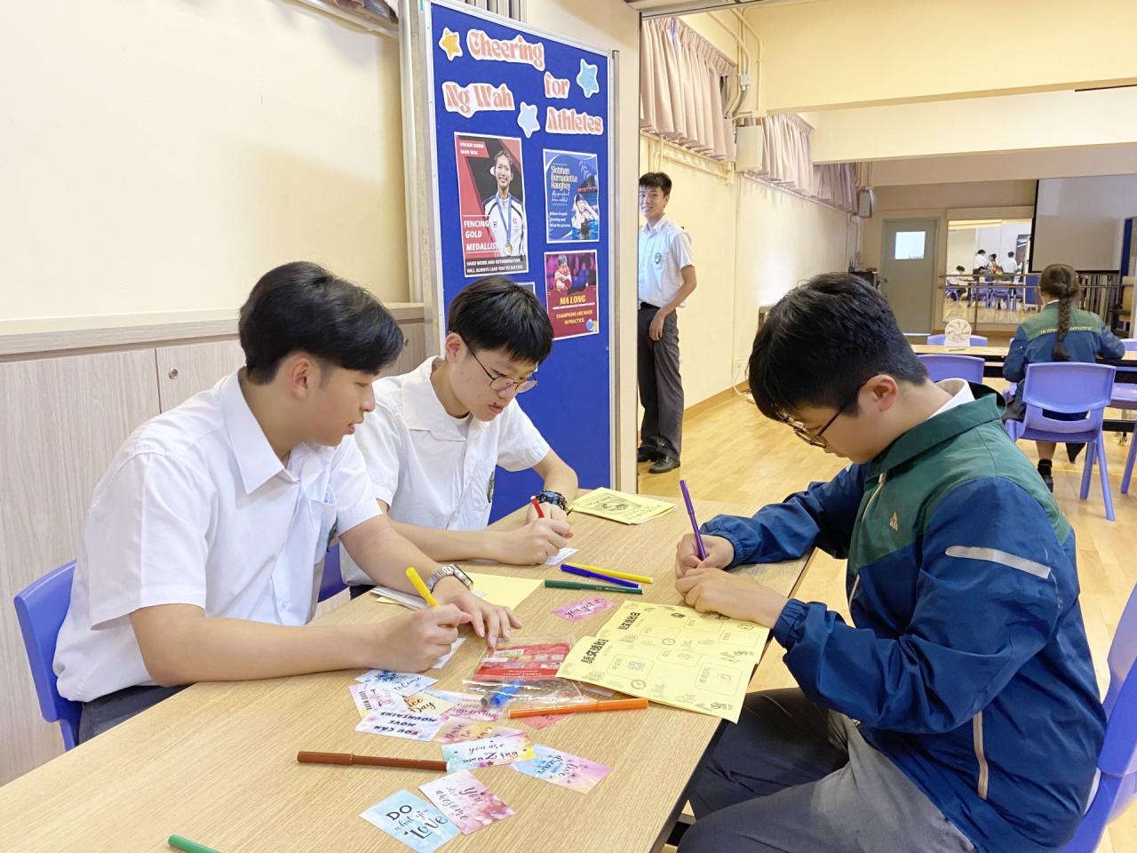 Cheering for Ng Wah Athletes was held on 26 September, 2024 at the Student Activity Room. This activity aims to encourage our peers and teachers to try their best on the coming Sports Day. Participants read the motivational quotes from the amazing athlete posters, then wrote their own encouraging messages to their peers and teachers.