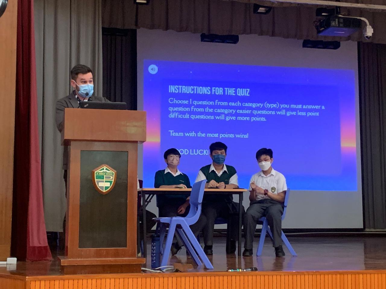 During English Week 2022, representatives from S1 (11/10/2022) and S2 (12/10/2022) took part in Lunchtime English Quizzes. They had the opportunity to take part in a fun game show style quiz, hosted by Mr Dallas and Ms Lee, that tested their knowledge on everything from grammar and vocabulary to knowledge about the school and Hong Kong. The teams battled well to win the top spot answering a wide variety of questions for all levels of students. In the end, the top 3 teams, from each form, were awarded prizes and all participants were given stamps in their English achievement scheme cards to further promote the importance of not only English but trying hard and taking part in school activities.