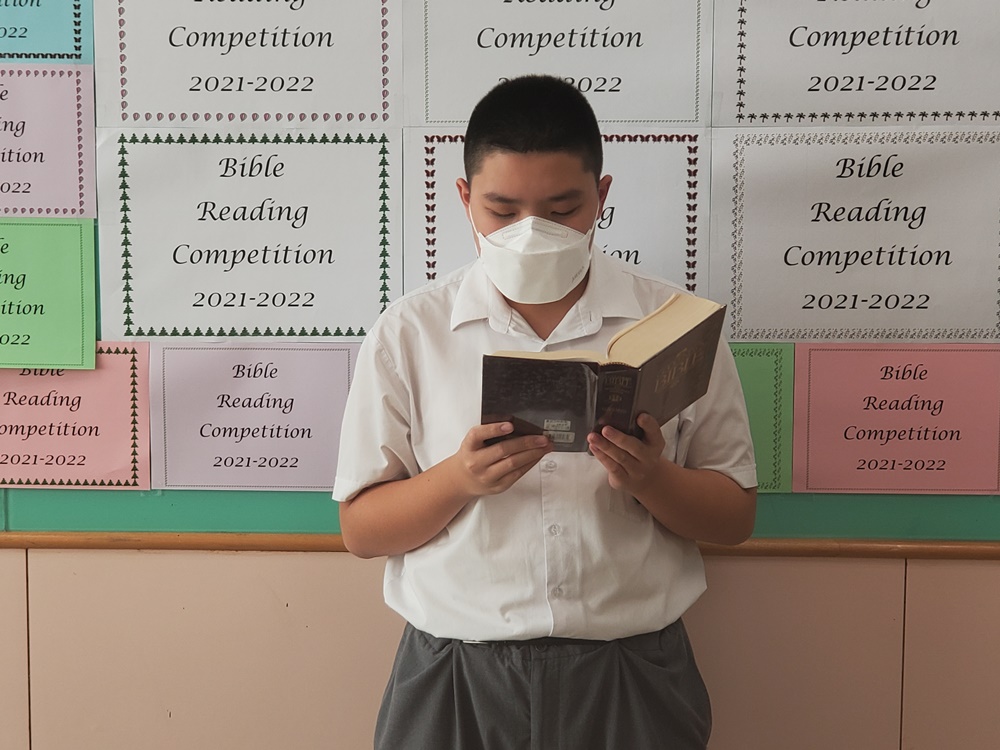 With the support of all the panel members of the English Department on 11th October, 2021 (Monday), the “Bible Reading Competition 2021” was successfully held in our Conference Room. Our English teachers helped to train students and were also the receptionists for the competition. Special thanks to our adjudicator, Mr R Dallas (our NET).